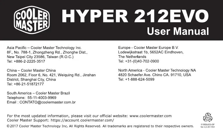 Olvassa el alább 📖 a magyar nyelvű használati útmutatót Cooler Master Hyper (16 oldal) a Processzorkoeler kategóriában. Ezt az útmutatót 16 ember találta hasznosnak és 8.5 felhasználó értékelte átlagosan 4.5 csillagra