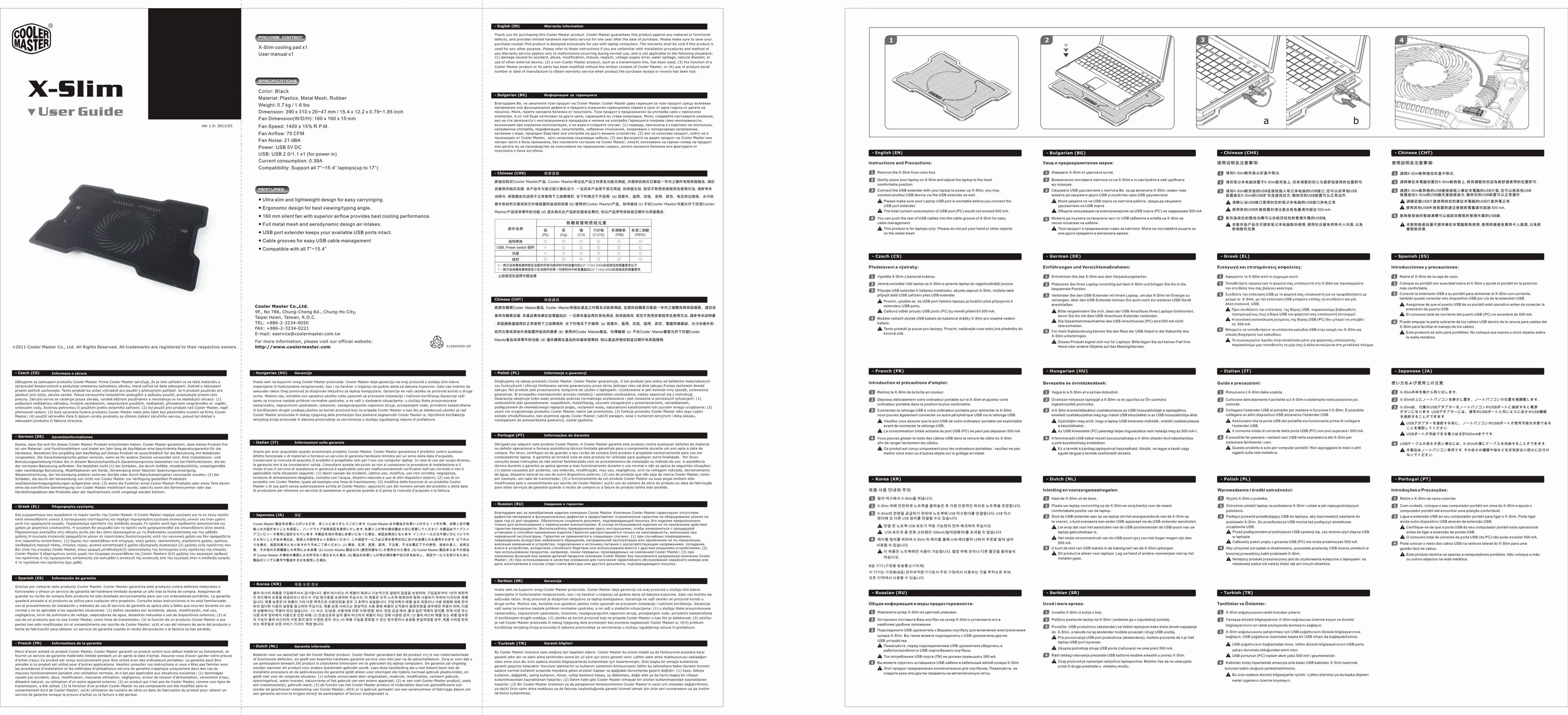 Olvassa el alább 📖 a magyar nyelvű használati útmutatót Cooler Master NotePal X-Slim (2 oldal) a Notebook hűtő kategóriában. Ezt az útmutatót 18 ember találta hasznosnak és 9.5 felhasználó értékelte átlagosan 4.3 csillagra