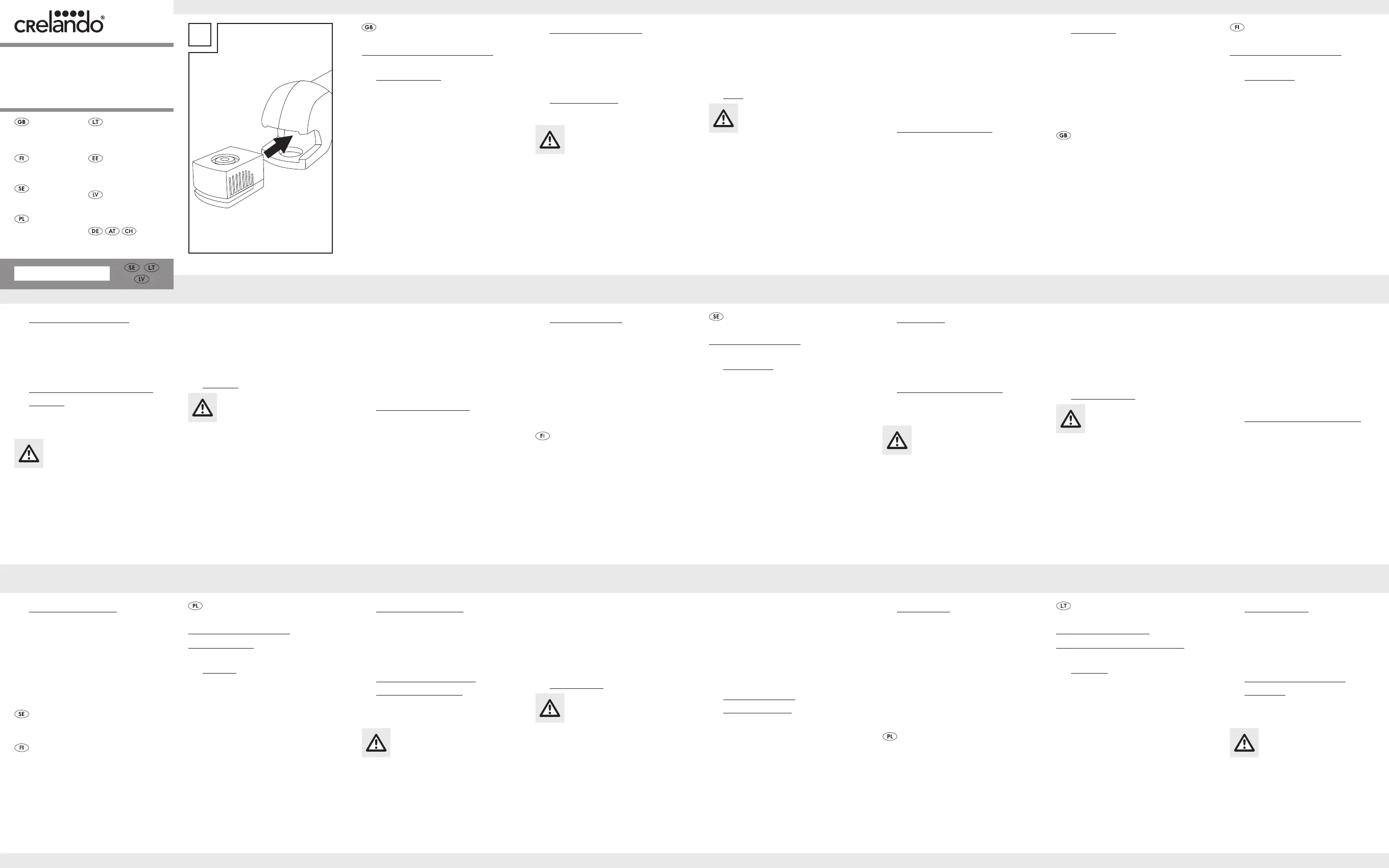 Olvassa el alább 📖 a magyar nyelvű használati útmutatót Crelando IAN 377014 (2 oldal) a nincs kategorizálva kategóriában. Ezt az útmutatót 11 ember találta hasznosnak és 6 felhasználó értékelte átlagosan 4.9 csillagra