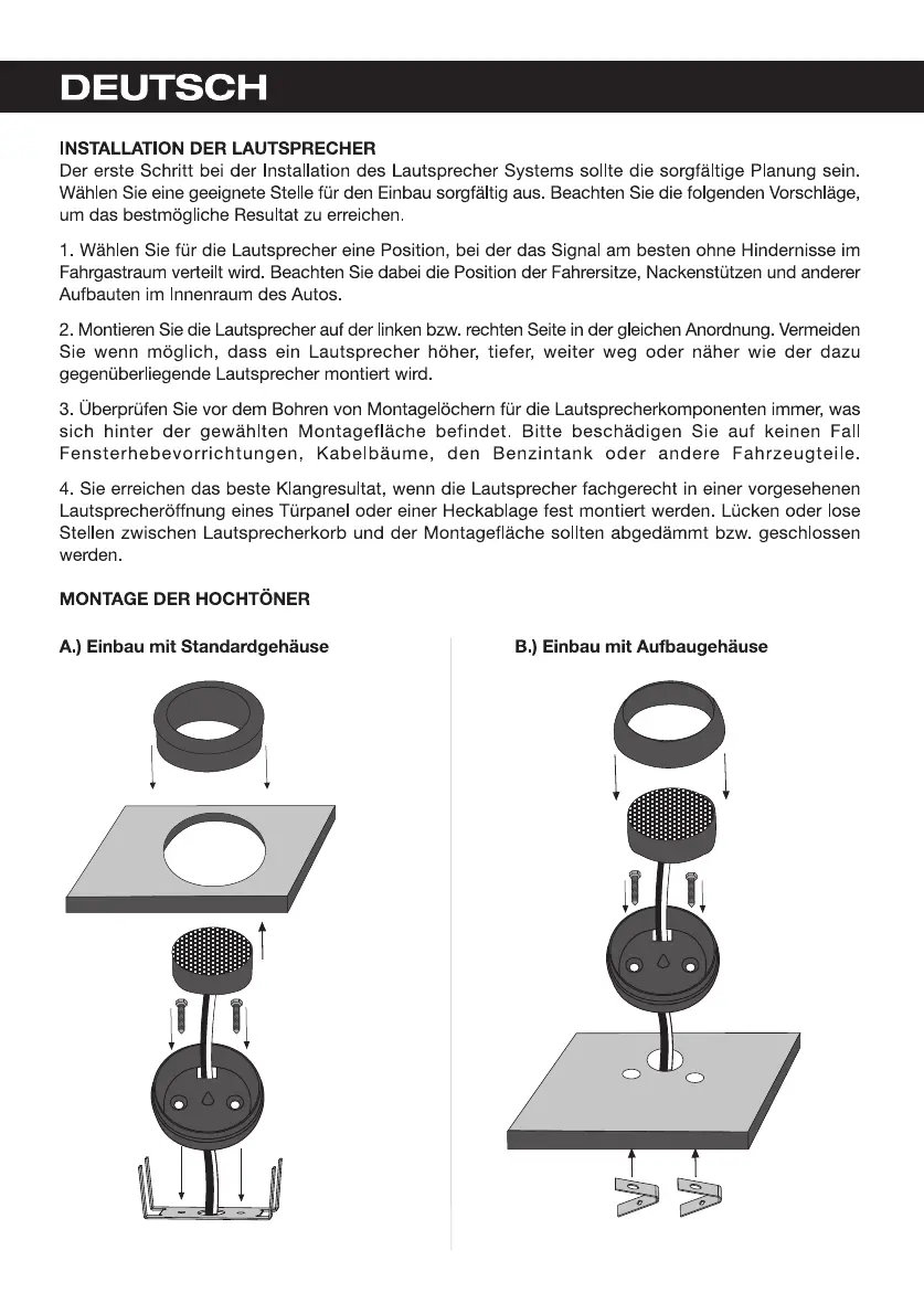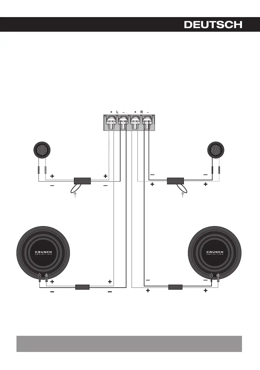 Schließen Sie die Hochtöner an die entsprechenden Anschlüsse der Hochtöner-Kabelweichen an.