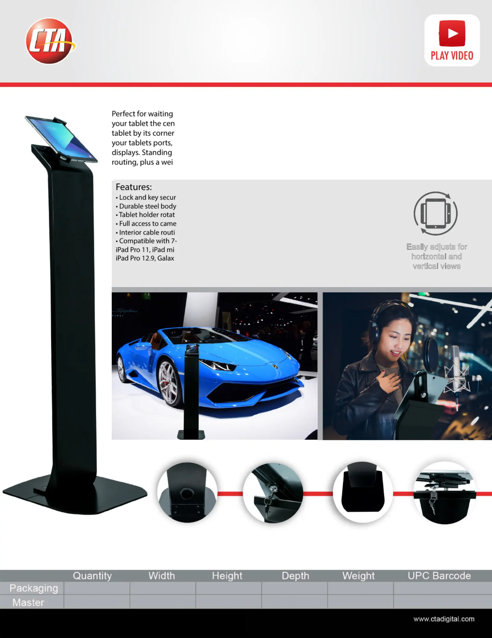 50 inches tall, this heavy-duty oor stand boasts a hollow interior for clean charge cable