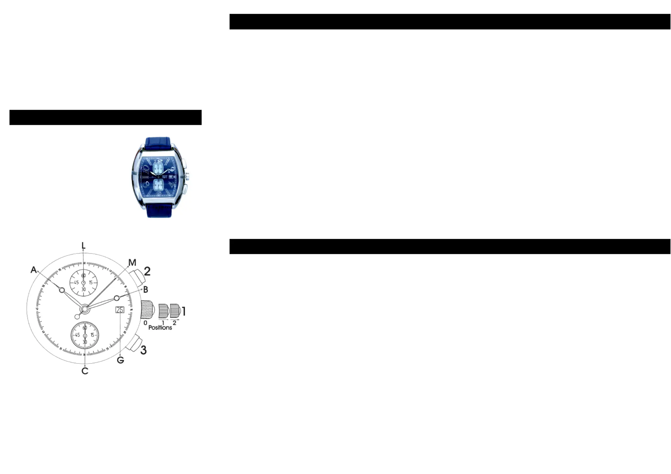 Pull out the crown (1) to position 2. Both hands (M) and (L) will turn