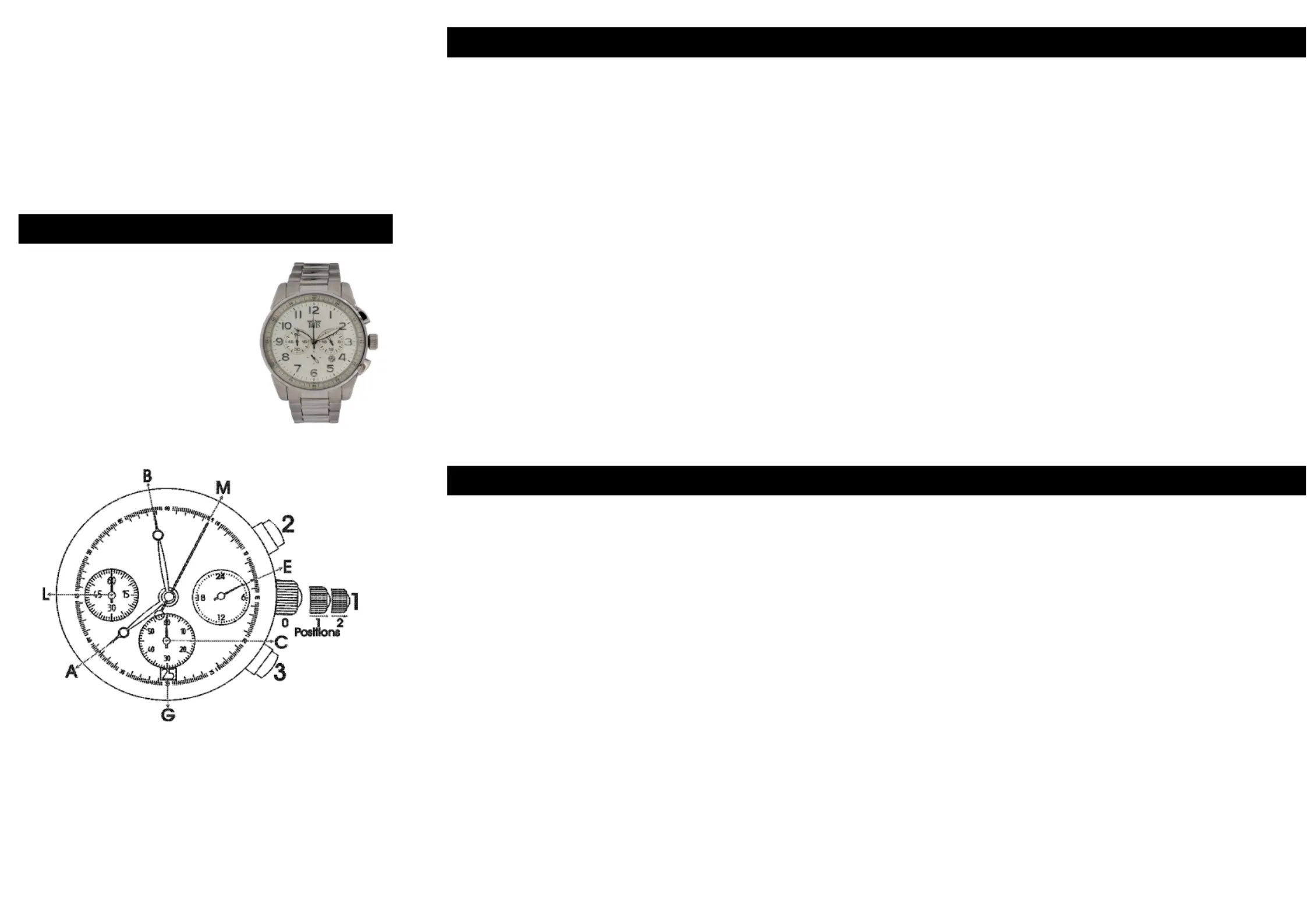 Pull out the crown (1) to position 2. Both hands (M) and (L) will turn