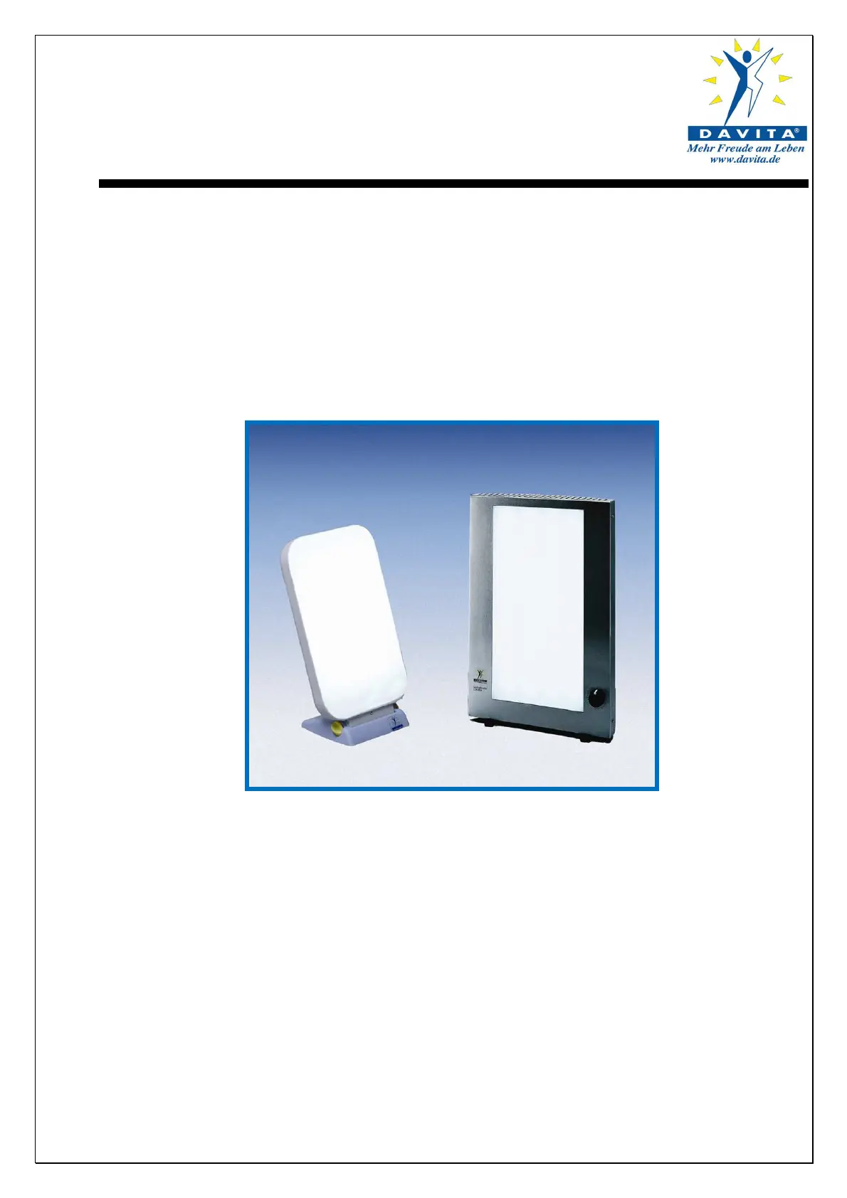 Olvassa el alább 📖 a magyar nyelvű használati útmutatót Davita LD 72 (25 oldal) a fényterápia kategóriában. Ezt az útmutatót 14 ember találta hasznosnak és 7.5 felhasználó értékelte átlagosan 5.0 csillagra