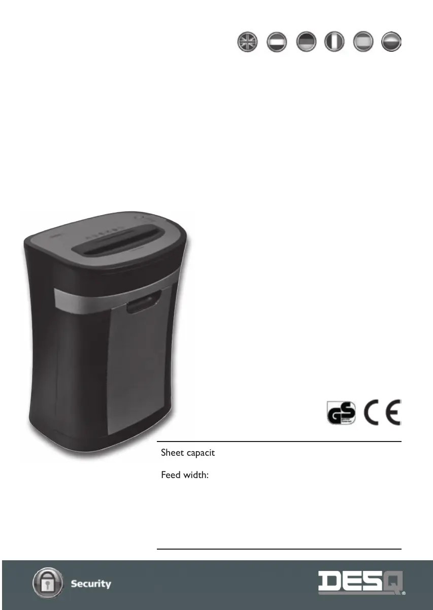 Olvassa el alább 📖 a magyar nyelvű használati útmutatót DESQ 20072 (5 oldal) a Papír aprító kategóriában. Ezt az útmutatót 18 ember találta hasznosnak és 9.5 felhasználó értékelte átlagosan 5.0 csillagra
