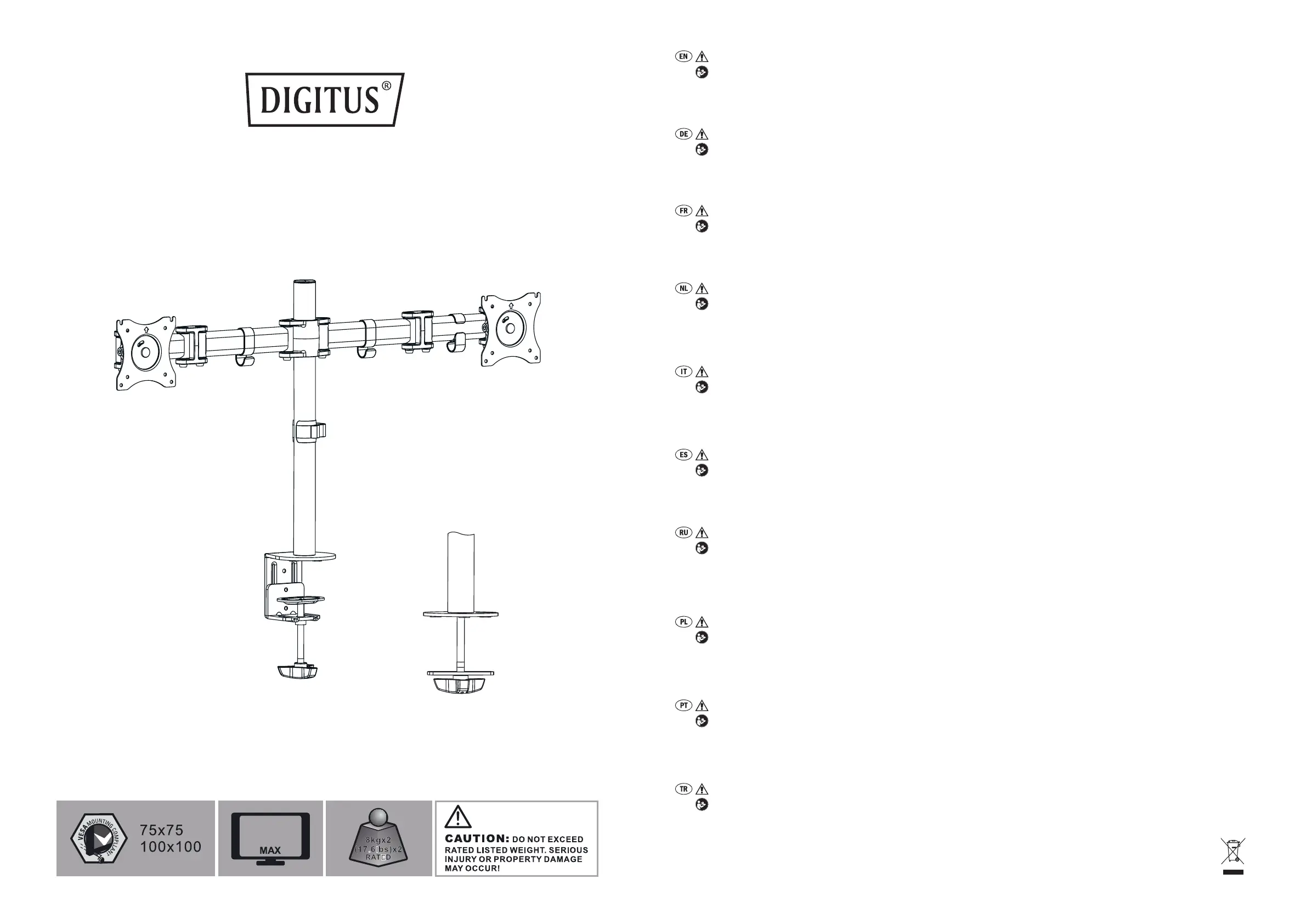 Olvassa el alább 📖 a magyar nyelvű használati útmutatót Digitus DA-90349 (2 oldal) a Lapos panel támogatás kategóriában. Ezt az útmutatót 13 ember találta hasznosnak és 7 felhasználó értékelte átlagosan 4.5 csillagra