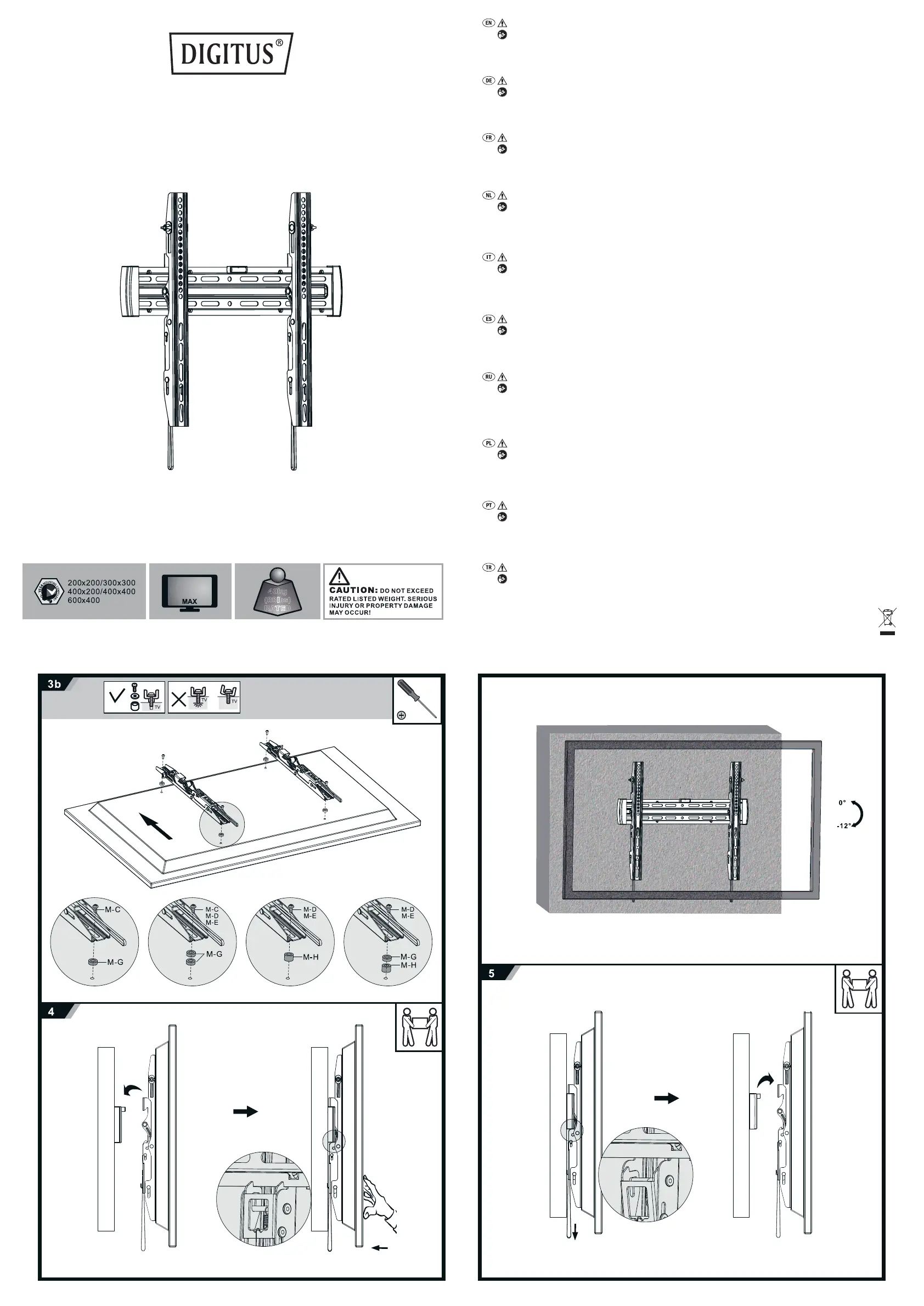 Olvassa el alább 📖 a magyar nyelvű használati útmutatót Digitus DA-90352 (2 oldal) a TV szekrény kategóriában. Ezt az útmutatót 18 ember találta hasznosnak és 2 felhasználó értékelte átlagosan 4.1 csillagra