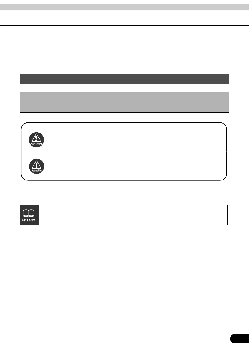 waarschuwing. Hiermee wordt getoond hoe het product veilig en correct wordt gebruikt om