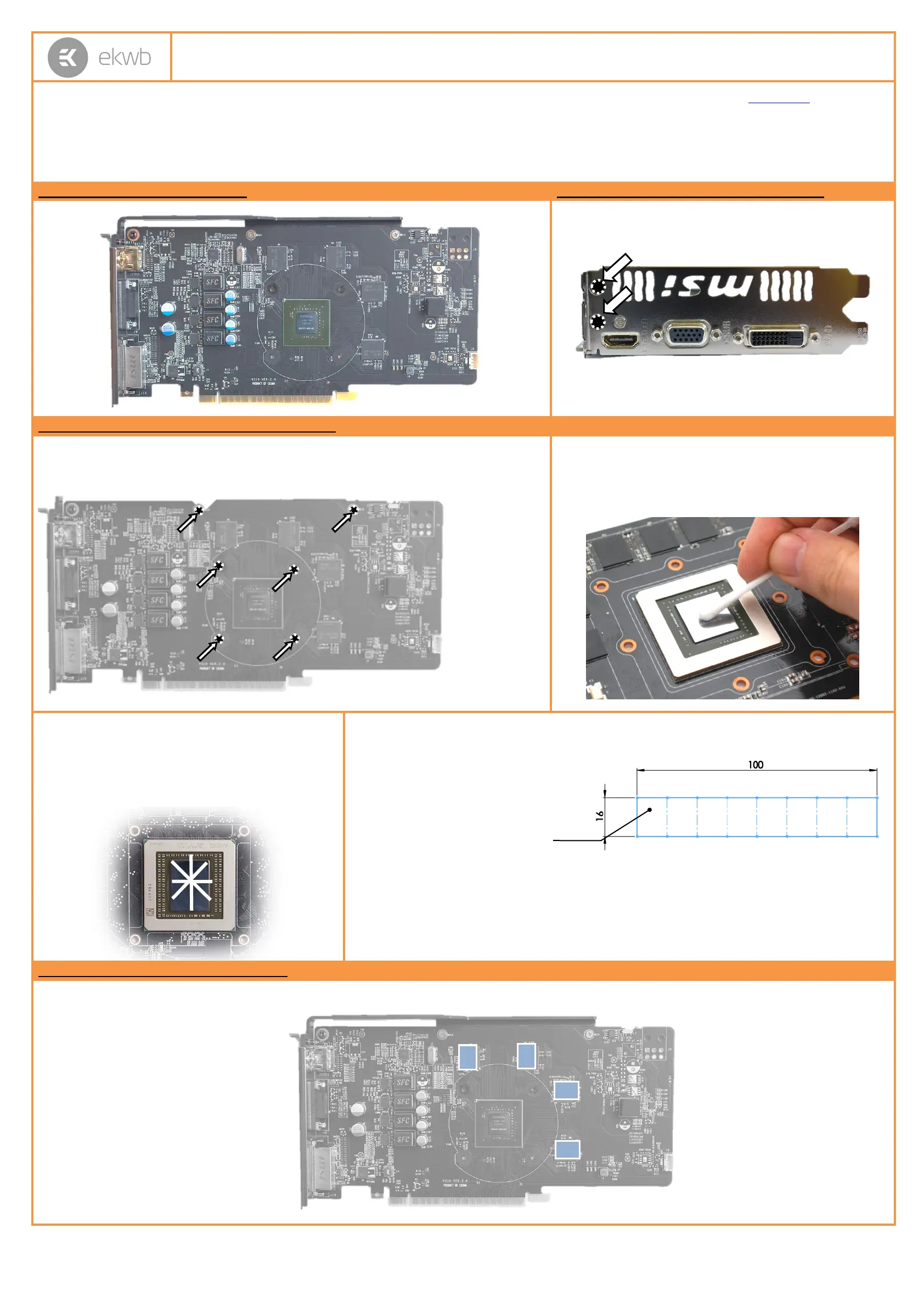 1. PLACING THERMAL PADS ON PCB. Place thermal pads on chips so that numbers on chips match size of thermal pads. EKWB made sure users have more than