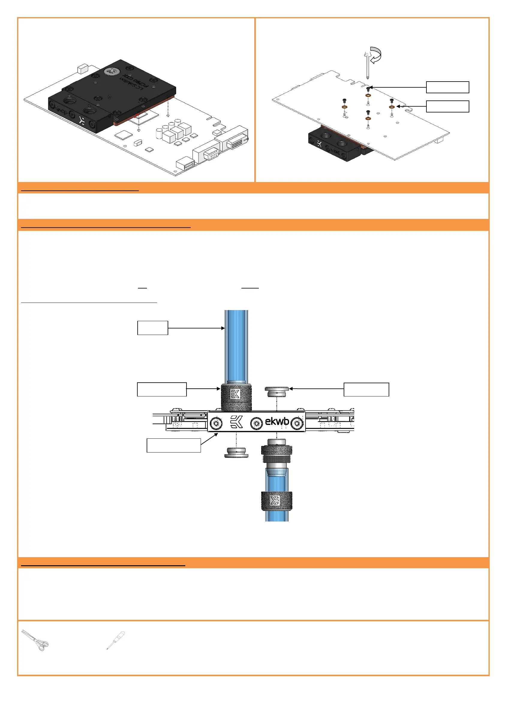 fittings with the EK-FC750 GTX series water blocks. To ensure that the tubes are securely attached to the barb/fittings, please use hose clamps or an appropriate
