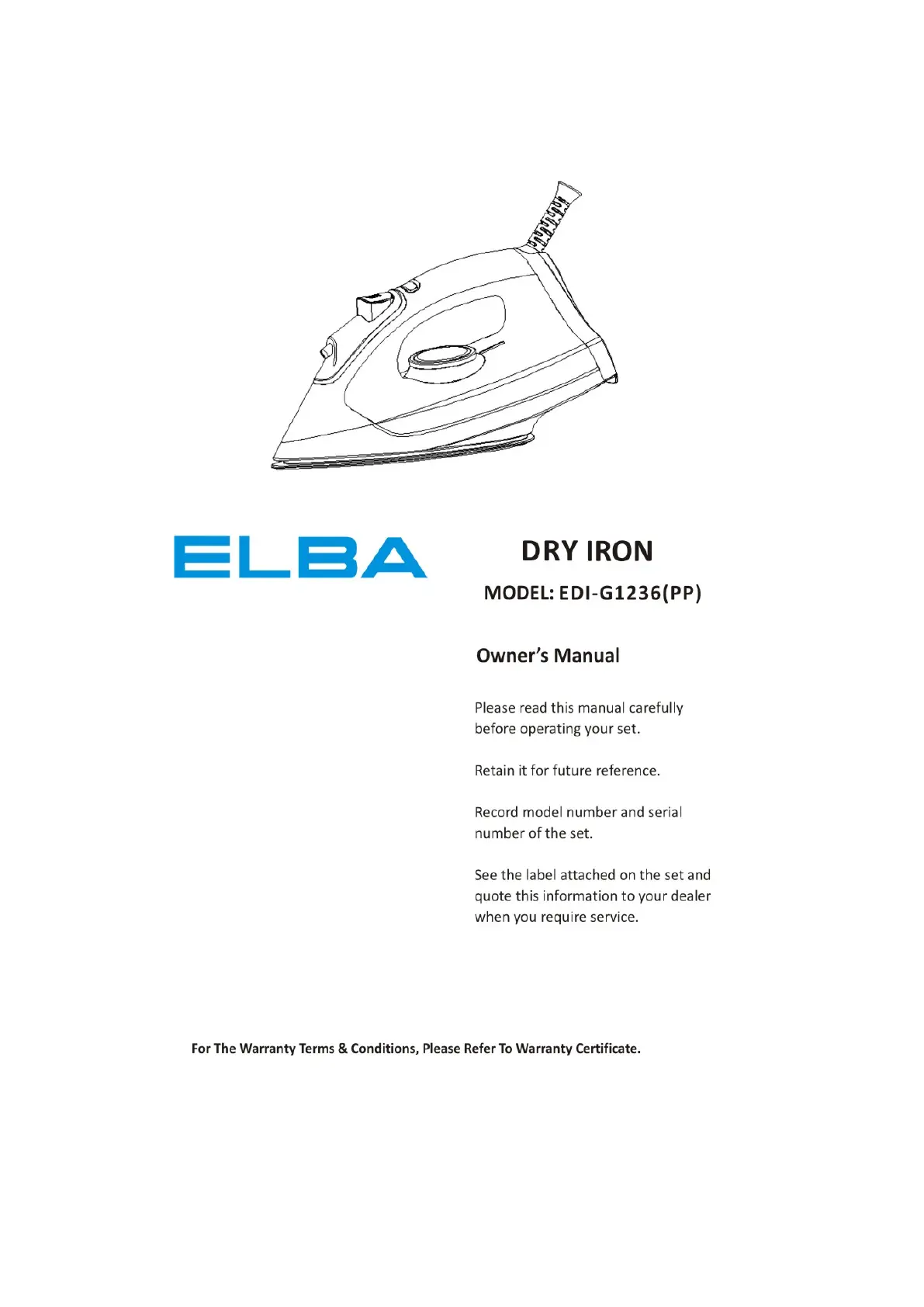 Olvassa el alább 📖 a magyar nyelvű használati útmutatót Elba EDI-G1236(PP) (7 oldal) a Vas kategóriában. Ezt az útmutatót 14 ember találta hasznosnak és 7.5 felhasználó értékelte átlagosan 5.0 csillagra