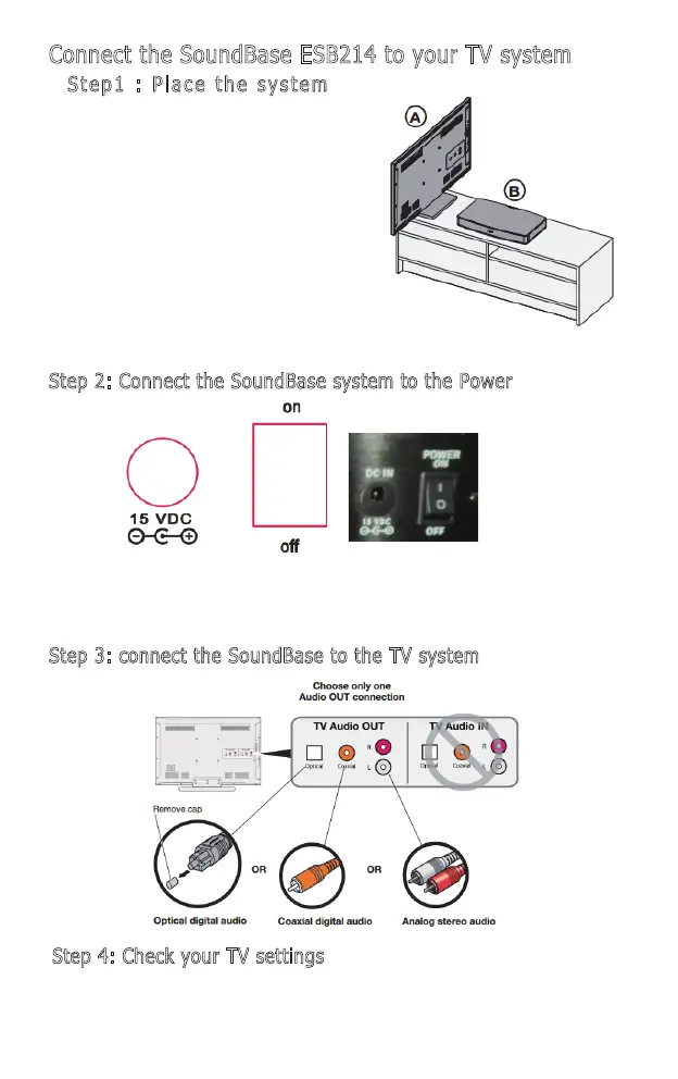 Connect the Power adaptor to the SoundBase and the power source, Then turn on
