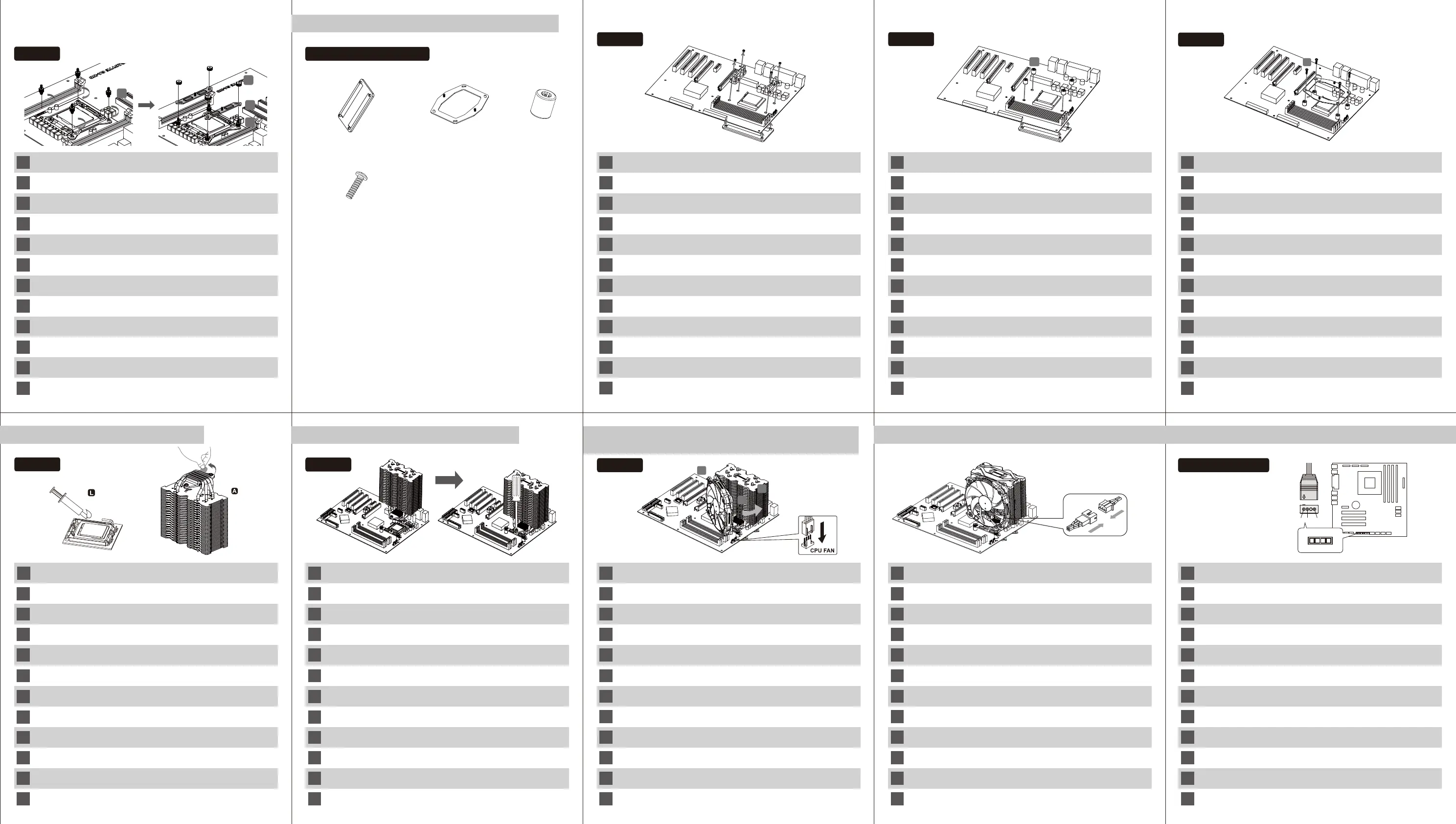 在背板上依系统CPU脚位所标示的孔位插入定位螺丝并套上垫圈 固定。