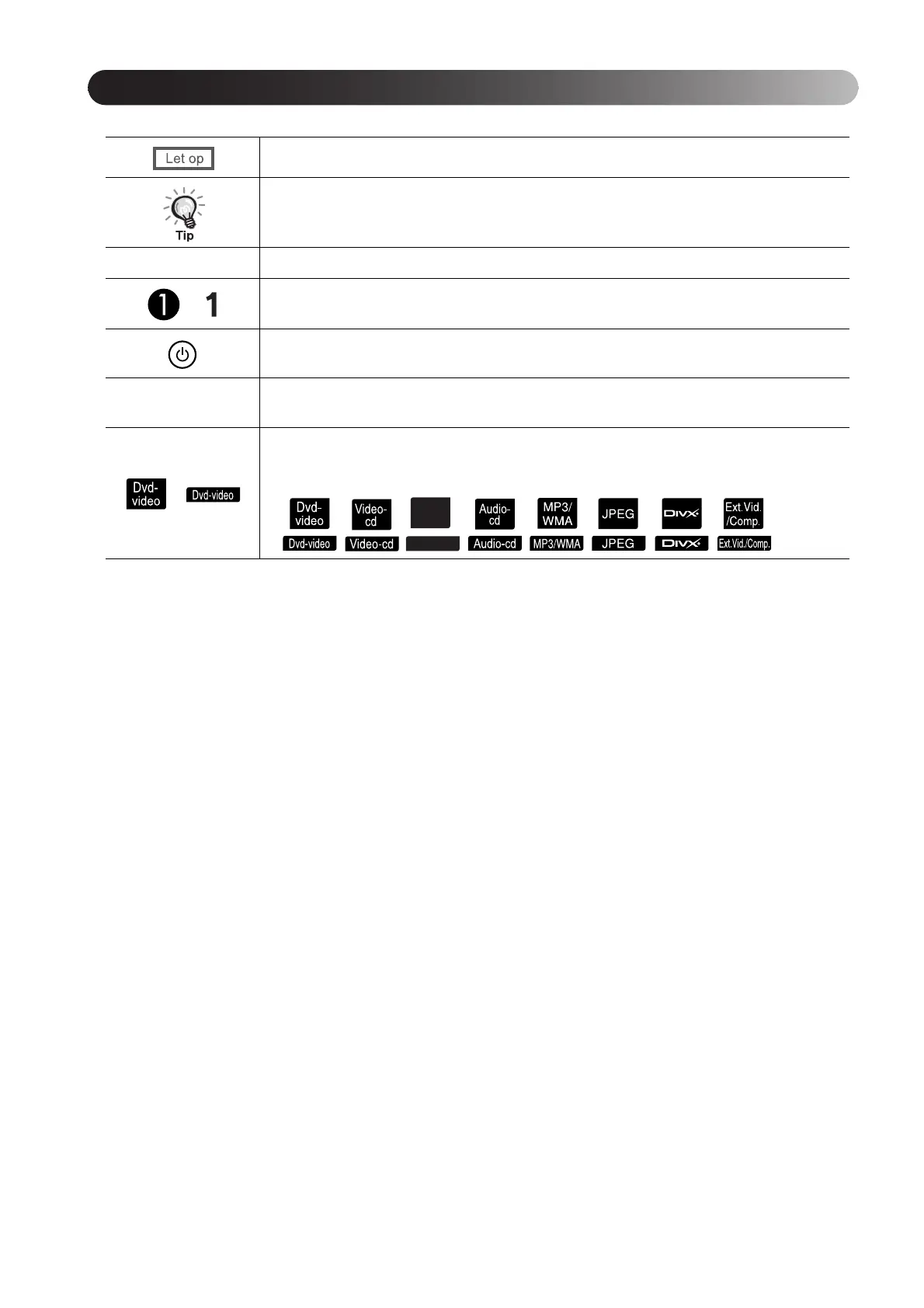 Met deze symbolen krijgt u informatie over het gebruikte type schijf.