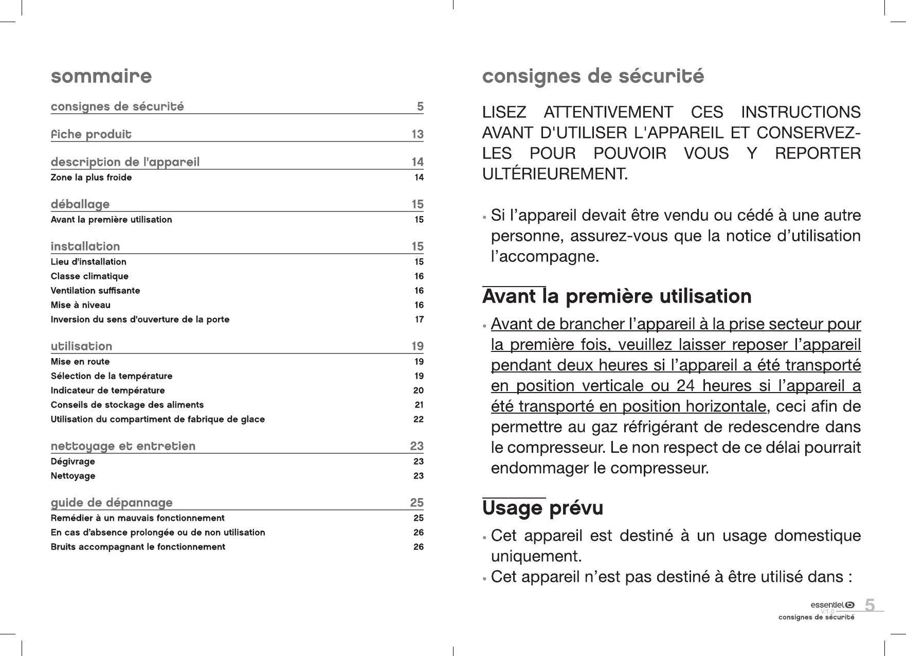 Olvassa el alább 📖 a magyar nyelvű használati útmutatót Essentiel B ERM 65-45b1 (15 oldal) a hűtőszekrény kategóriában. Ezt az útmutatót 8 ember találta hasznosnak és 4.5 felhasználó értékelte átlagosan 5.0 csillagra