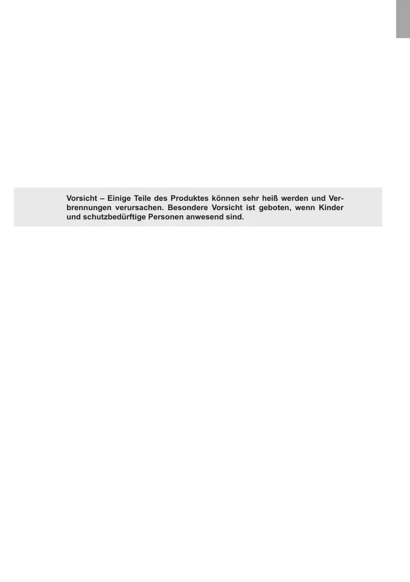 Vorsicht – Einige Teile des Produktes können sehr heiß werden und Ver-