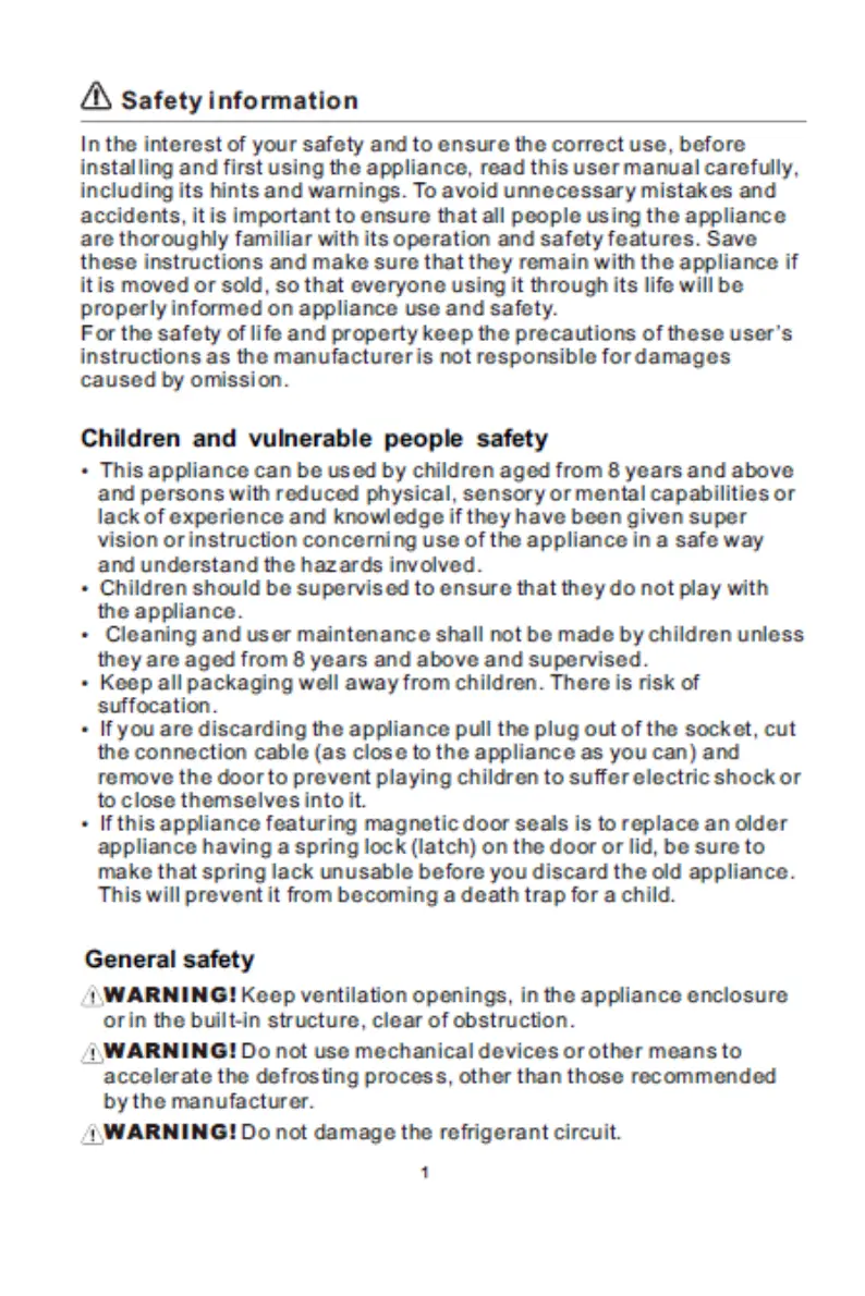WARNING! #eep ventilation openings, in the appliance enclosure