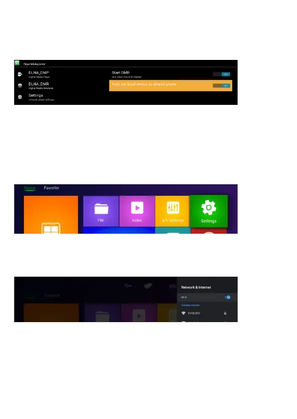 - Zapněte „DLNA DMP“ a „DLNA DMR“.