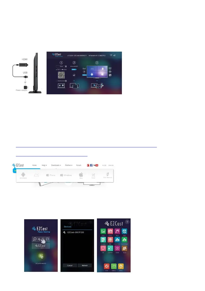 • nainstalujte do svého zařízení aplikaci „EZcast“