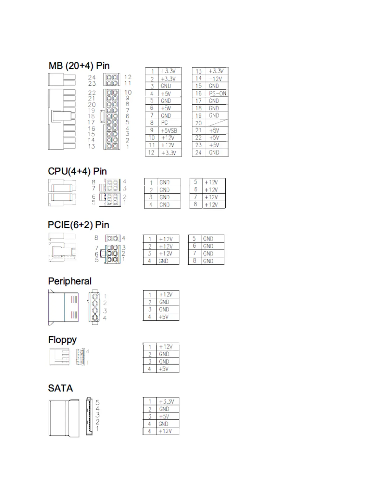 The power supply shall shut down and latch off for shorting +5V, +12V, -12V or +3.3v rails to GND and