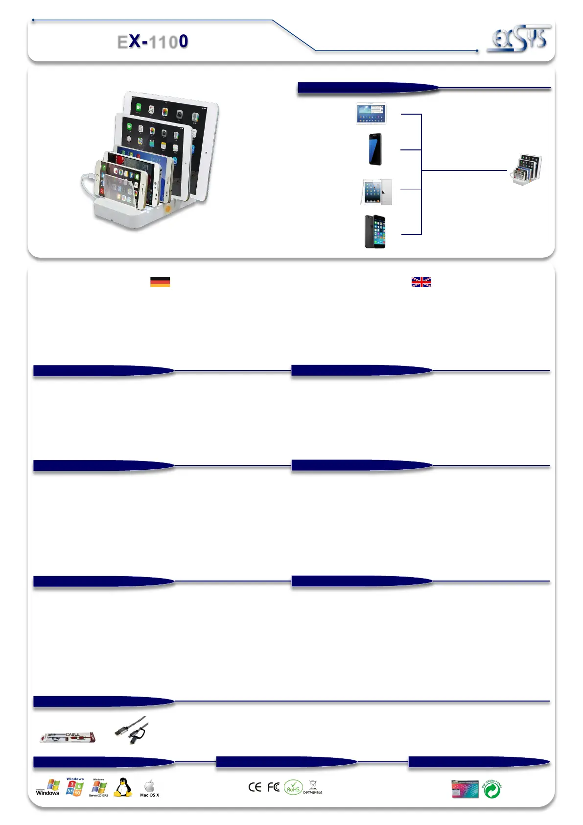 Olvassa el alább 📖 a magyar nyelvű használati útmutatót EXSYS EX-1100 (2 oldal) a Bölcső/dokkoló állomás kategóriában. Ezt az útmutatót 9 ember találta hasznosnak és 5 felhasználó értékelte átlagosan 4.9 csillagra