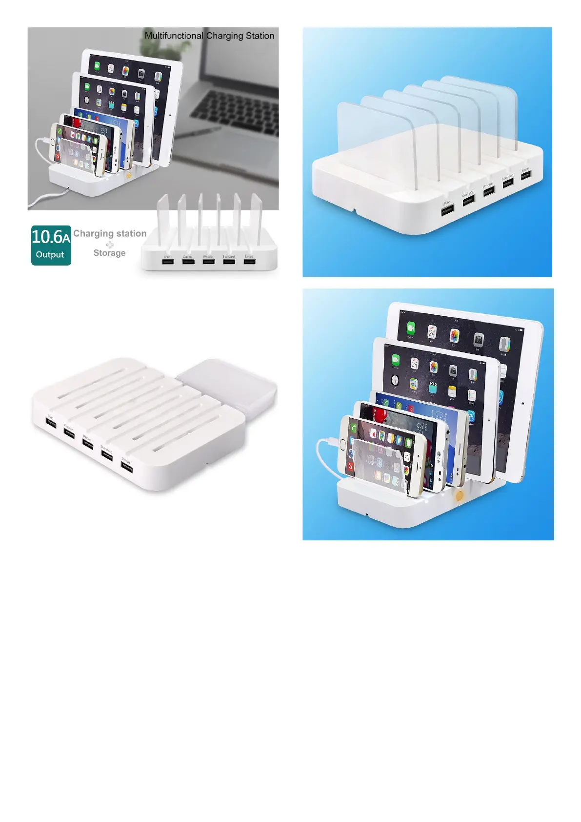 Support five devices such as iPhone, iPad, Smart phones and Tablet charge same times.