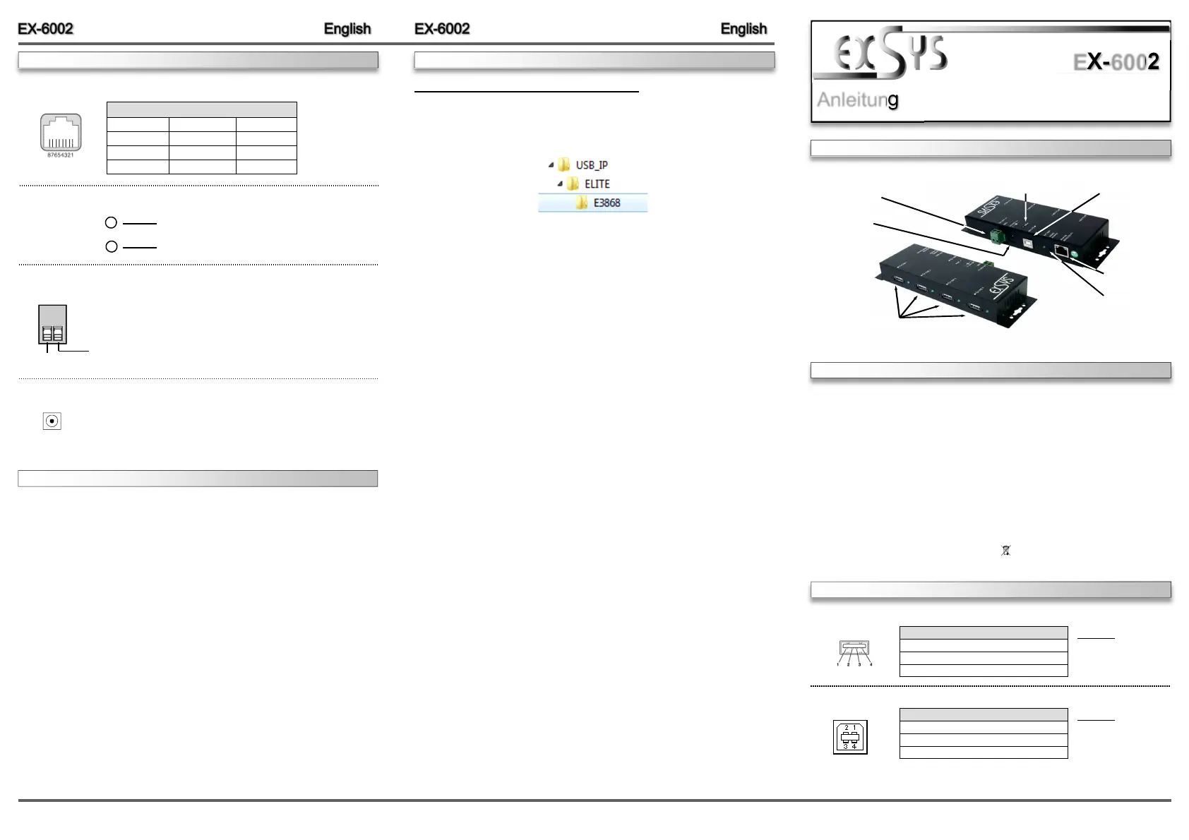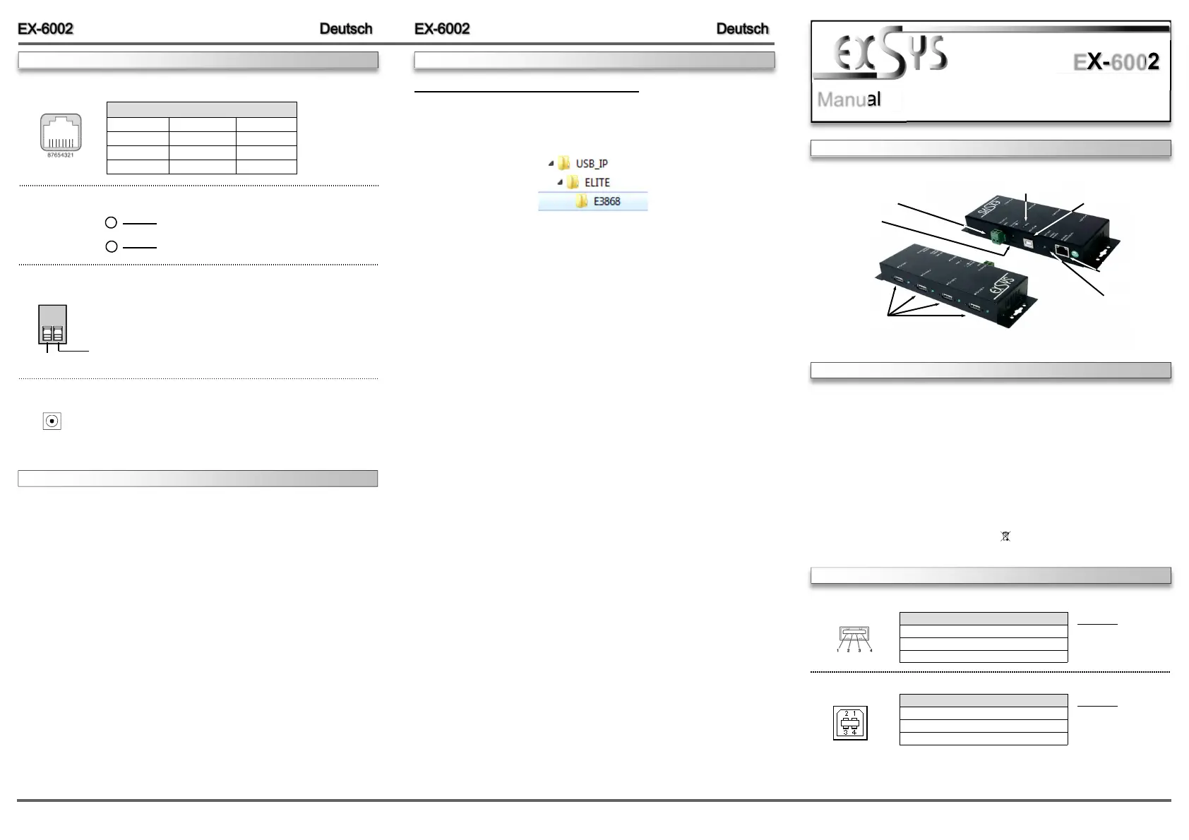 The EX-6002 provides 4 USB 2.0 A-Ports for devices and 1 USB 2.0 B-Port and 1 RJ45 con-