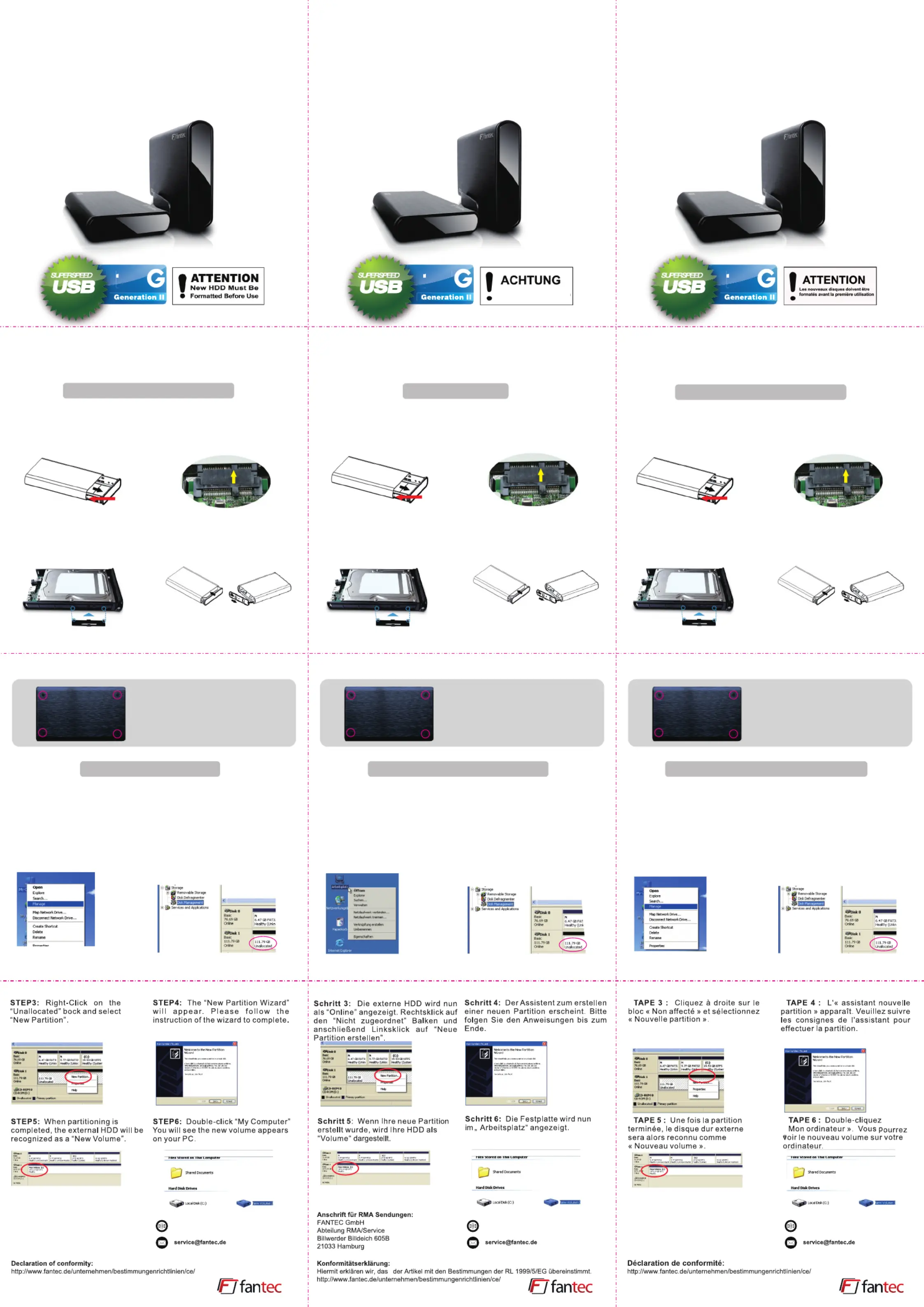 Olvassa el alább 📖 a magyar nyelvű használati útmutatót Fantec DB-ALU31A (1 oldal) a Merevlemez (külső) kategóriában. Ezt az útmutatót 17 ember találta hasznosnak és 9 felhasználó értékelte átlagosan 4.3 csillagra