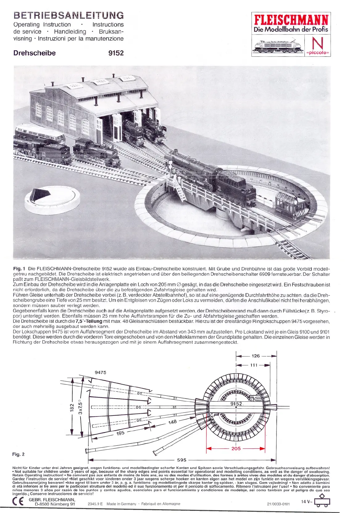 Fig.1DieFLEISCHMANN-Drehscheibe9152wurdealsEinbau-Drehscheibekonstruiert.MitGrubeundDrehbühneistdasgroßeVorbildmodeil-