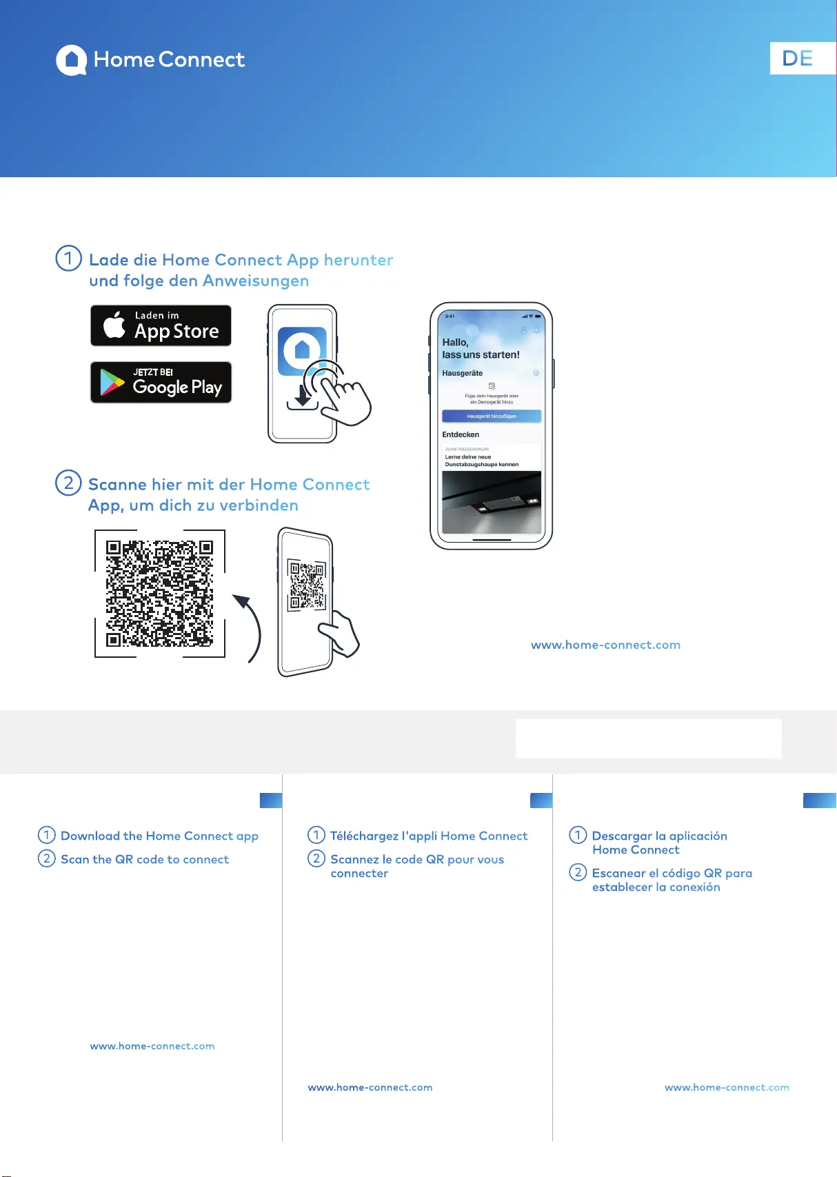 App Inhalte sind dynamisch und abhängig vom verbundenen Gerät und deinem Land. Die Verügbarkeit der Home Connect Funktion ist abhängig von den