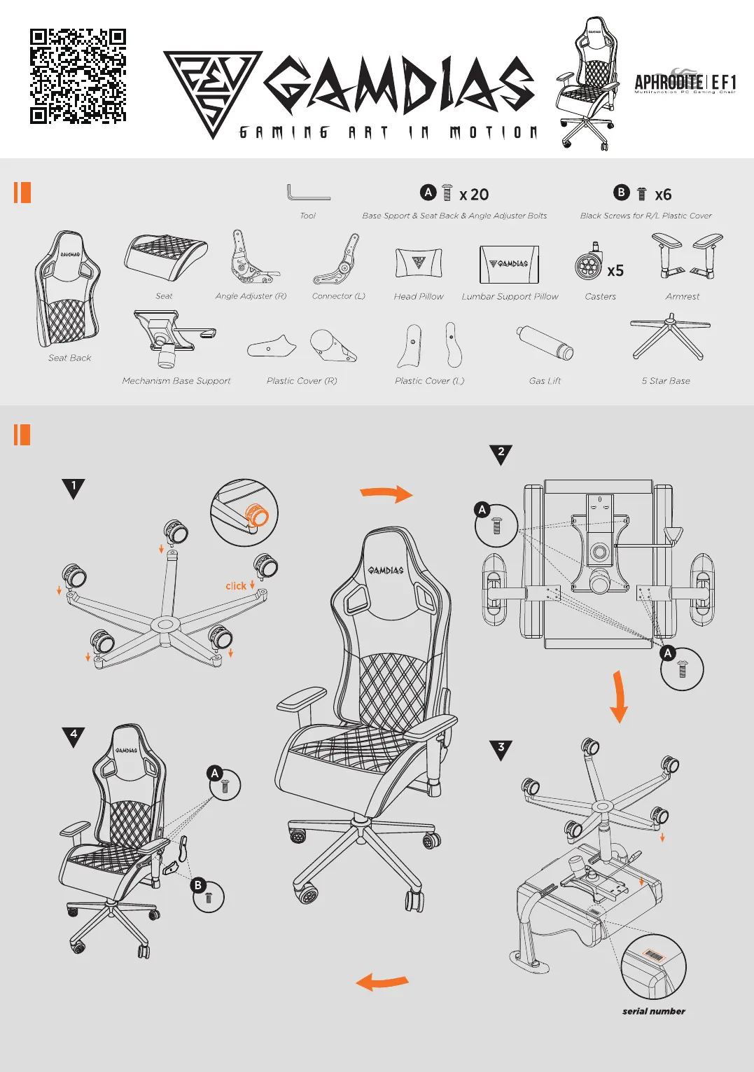 Please keep the serial number of your chair for service use when contacting us at gdservice@gamdias.com