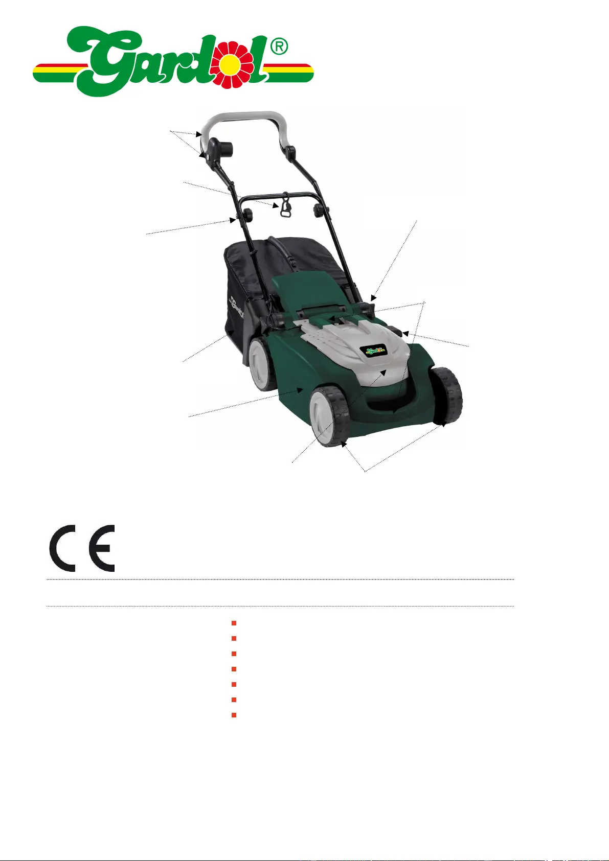 Olvassa el alább 📖 a magyar nyelvű használati útmutatót Gardol GEE 1700 (132 oldal) a Fűnyírógép kategóriában. Ezt az útmutatót 15 ember találta hasznosnak és 8 felhasználó értékelte átlagosan 5.0 csillagra