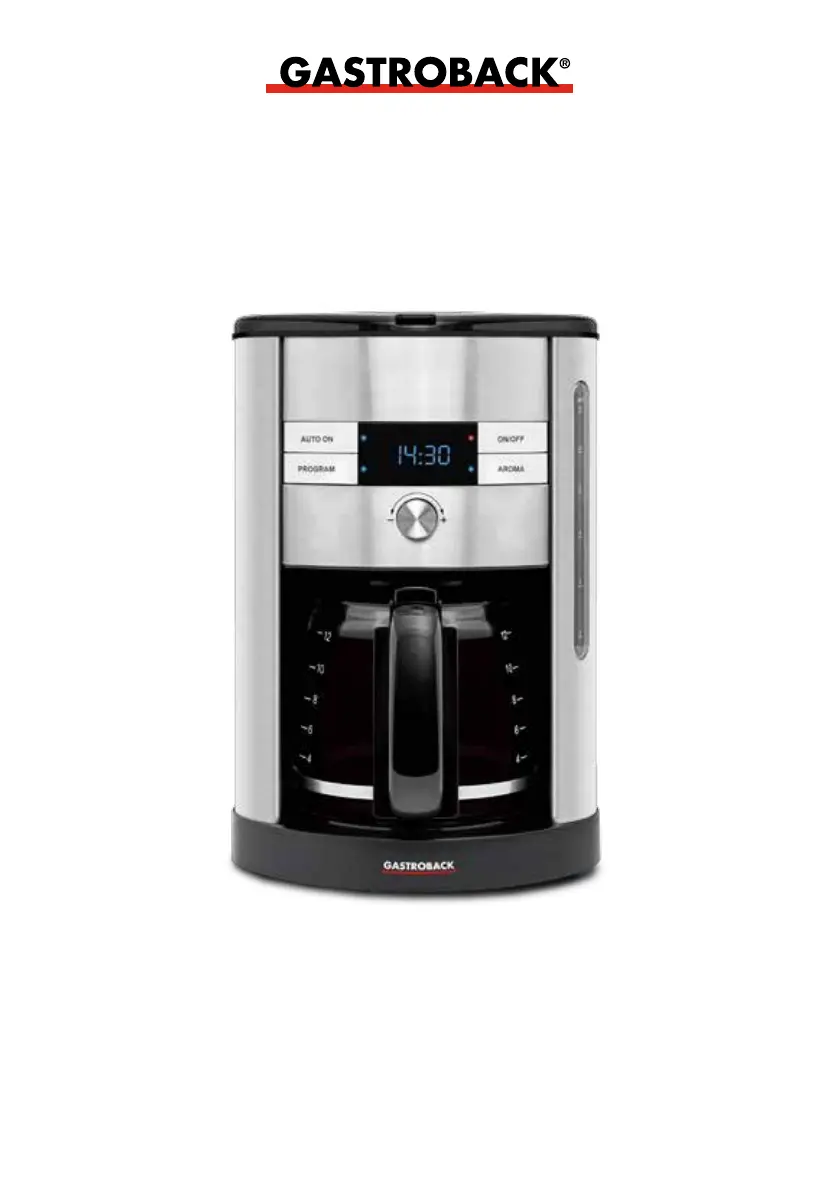 Olvassa el alább 📖 a magyar nyelvű használati útmutatót Gastroback 42704 (48 oldal) a Kávéfőző kategóriában. Ezt az útmutatót 13 ember találta hasznosnak és 7 felhasználó értékelte átlagosan 4.2 csillagra
