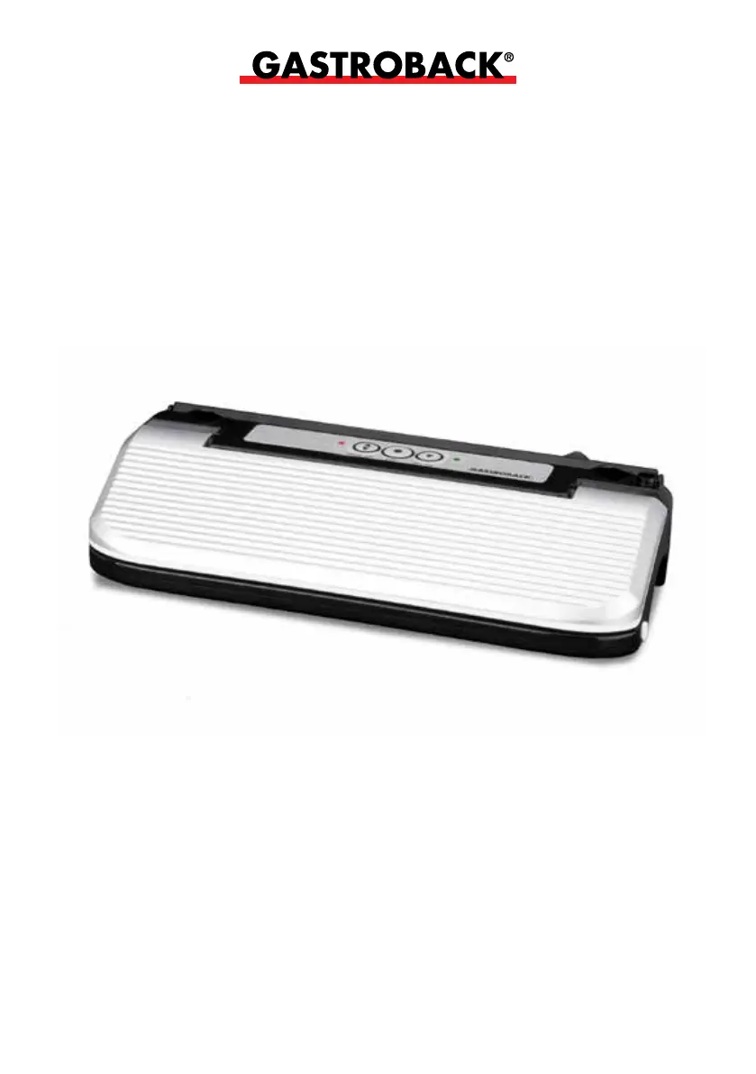 Olvassa el alább 📖 a magyar nyelvű használati útmutatót Gastroback 46007 (48 oldal) a vákuumcsomagoló kategóriában. Ezt az útmutatót 16 ember találta hasznosnak és 8.5 felhasználó értékelte átlagosan 3.7 csillagra