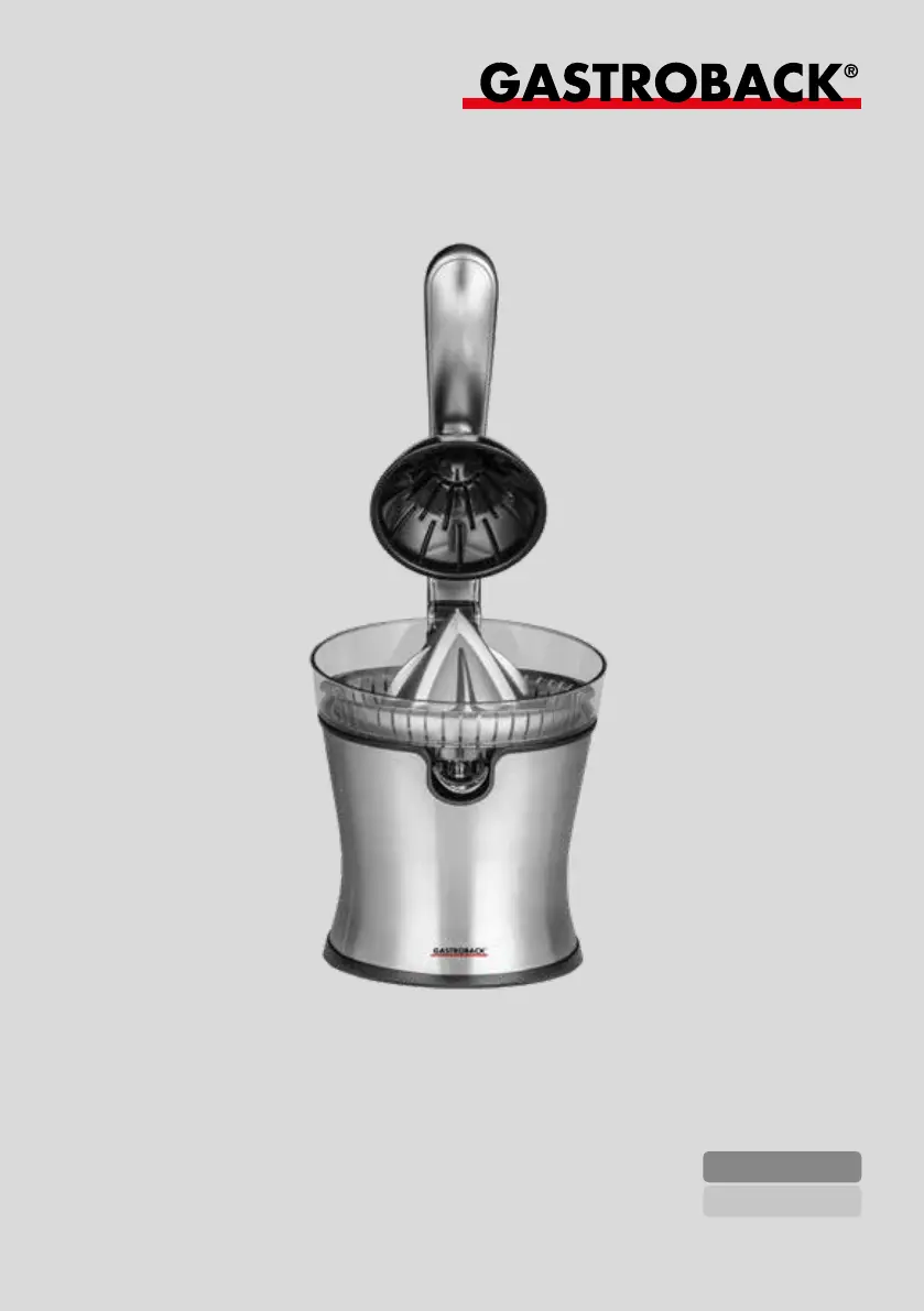 Olvassa el alább 📖 a magyar nyelvű használati útmutatót Gastroback Advanced Pro S 41150 (33 oldal) a Gyümölcscentrifuga kategóriában. Ezt az útmutatót 9 ember találta hasznosnak és 5 felhasználó értékelte átlagosan 4.5 csillagra