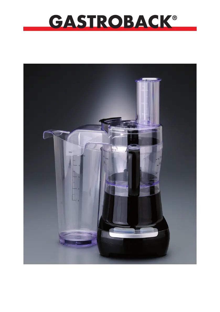 Olvassa el alább 📖 a magyar nyelvű használati útmutatót Gastroback Design Food Processor S (28 oldal) a Konyhai robotgép kategóriában. Ezt az útmutatót 12 ember találta hasznosnak és 6.5 felhasználó értékelte átlagosan 3.9 csillagra