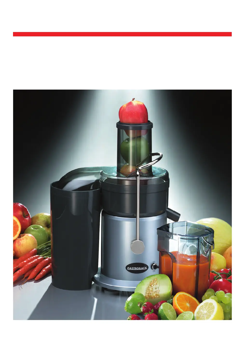 Olvassa el alább 📖 a magyar nyelvű használati útmutatót Gastroback Design Juicer (28 oldal) a Gyümölcscentrifuga kategóriában. Ezt az útmutatót 10 ember találta hasznosnak és 5.5 felhasználó értékelte átlagosan 4.1 csillagra