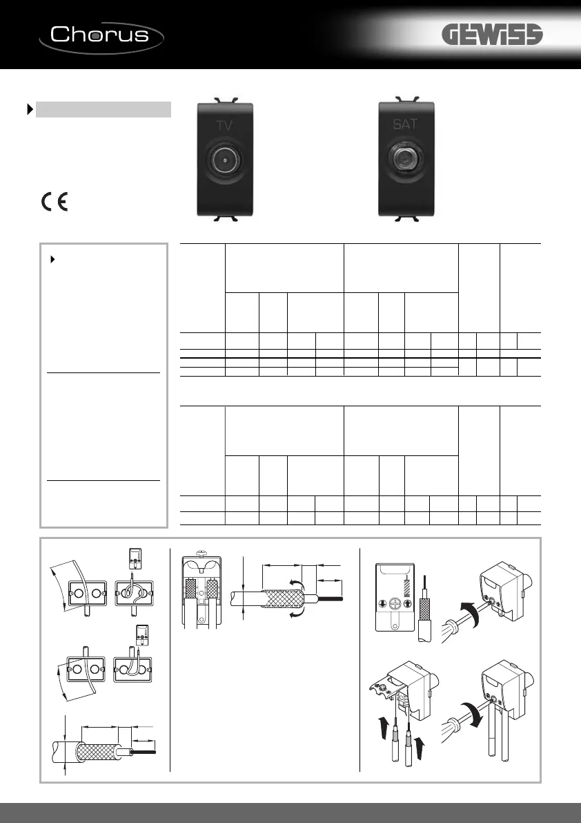 Olvassa el alább 📖 a magyar nyelvű használati útmutatót Gewiss GW12361 (2 oldal) a Koax-kábel kategóriában. Ezt az útmutatót 13 ember találta hasznosnak és 7 felhasználó értékelte átlagosan 3.8 csillagra