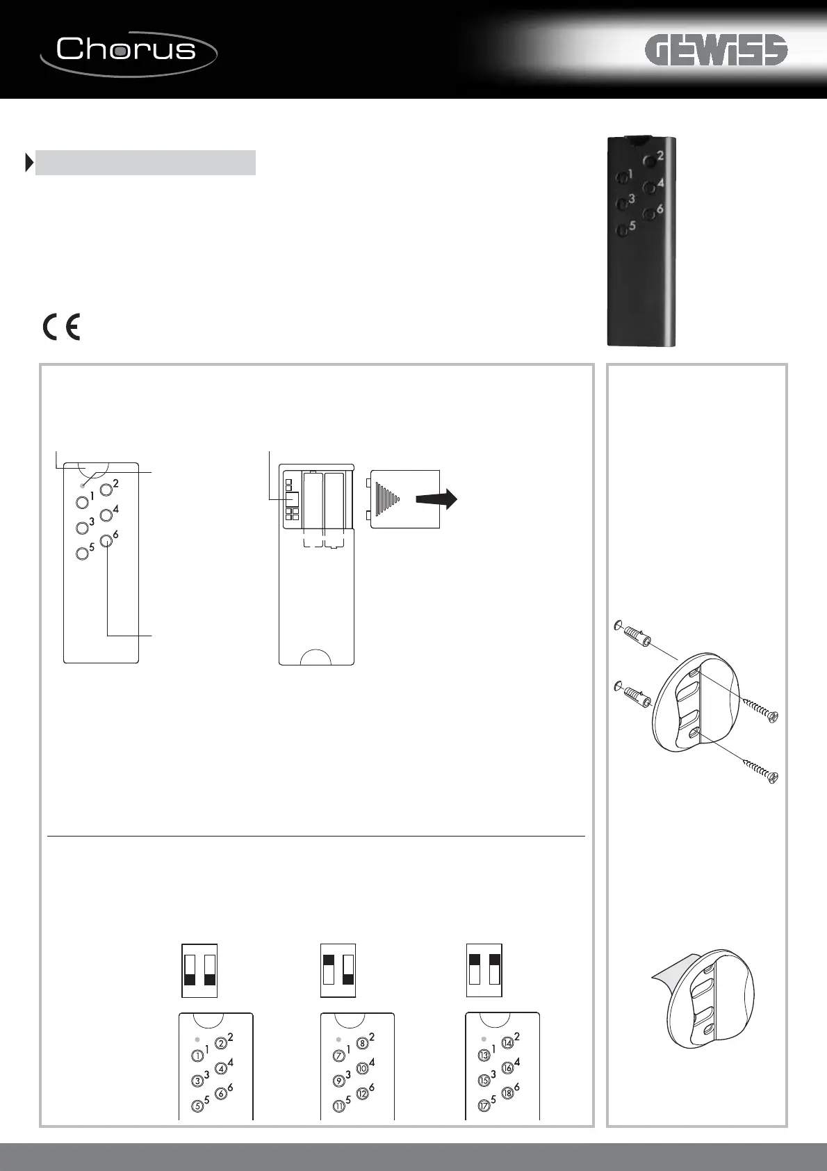 Der eingebaute Wählschalter gestattet die Änderung der Übertragungsfrequenz der Drucktasten um Interferenzen mit anderen Fernbedienungen zu vermeiden.