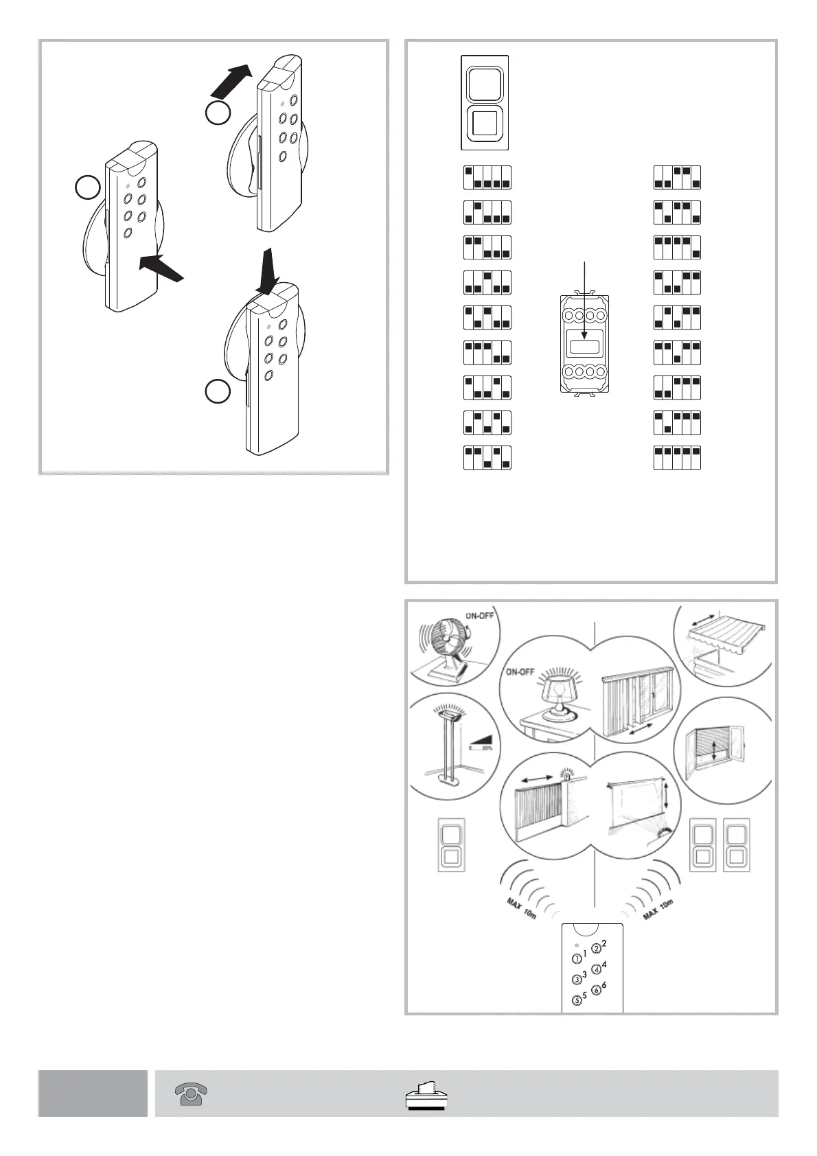 The selector fitted inside switches the pushbutton transmission bands so as to avoid interference with other remote controls.