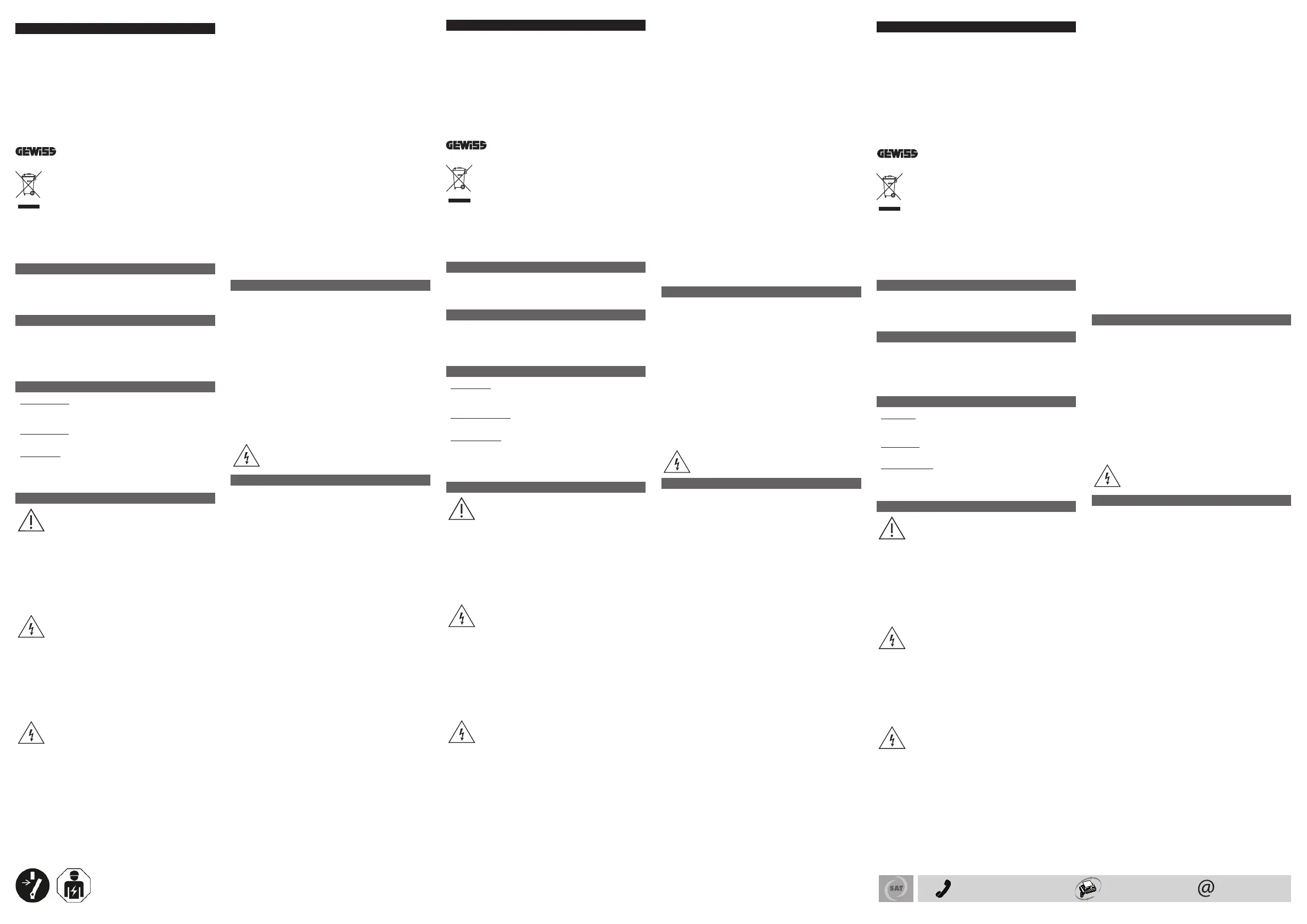 dubbio contattare il SAT Servizio Assistenza Tecnica GEWISS.