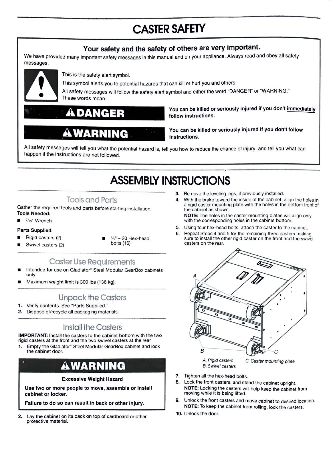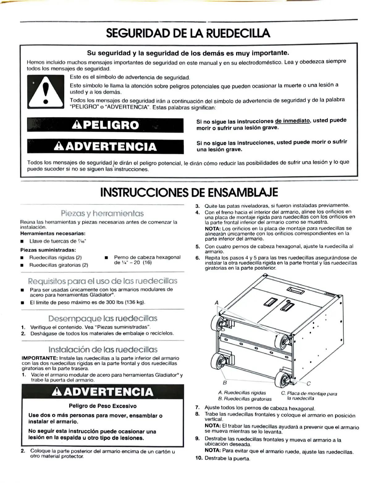 CASTER SAFETY ........................................... 2 SEGURIDAD DE LA RUEDECILLA .............. 3