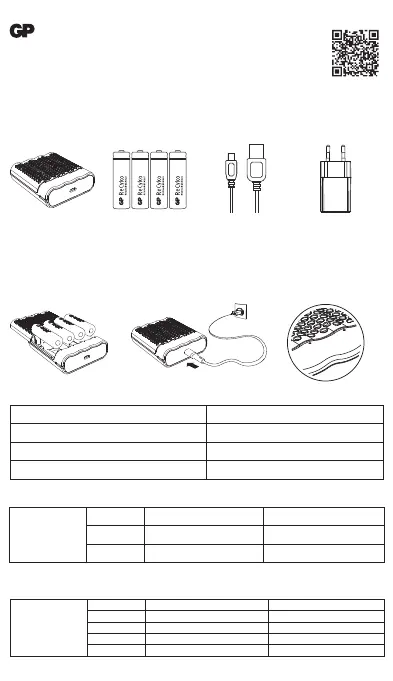 GP NiHM rechargeable batteries* USB charging cable