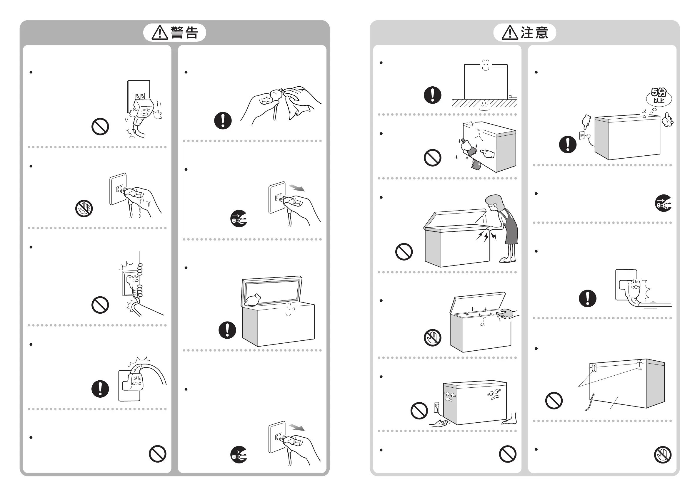 ぬれた手で電源プラグを抜き差ししないぬれた手で電源プラグを抜き差ししない