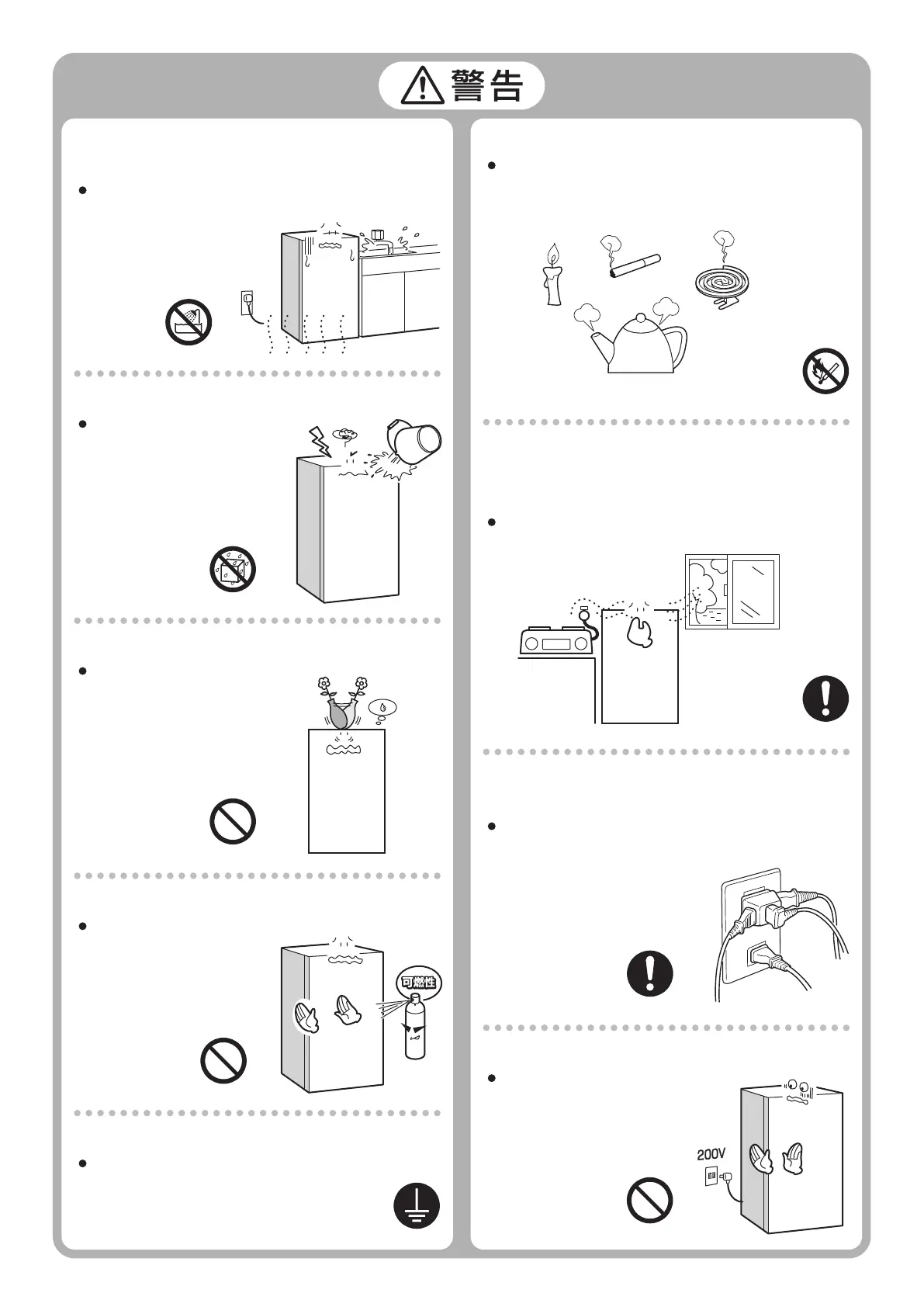 冷凍庫が倒れたり、ドアがはずれたり、手をはさんだ