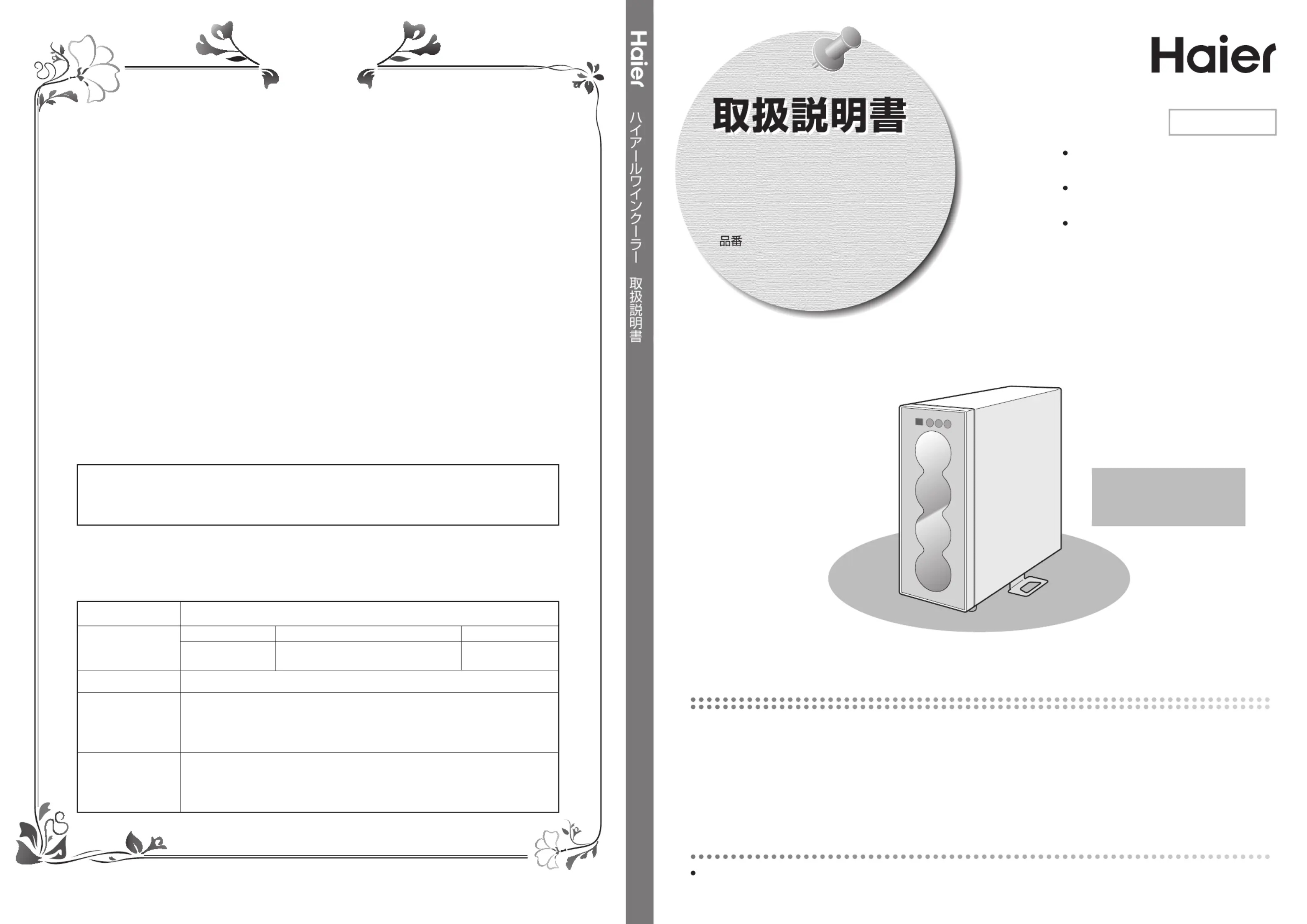 3.ご贈答等で本書に記入の販売店で無料修理をお受けになれない場合には、ハイアールジャパンセールス株式会社