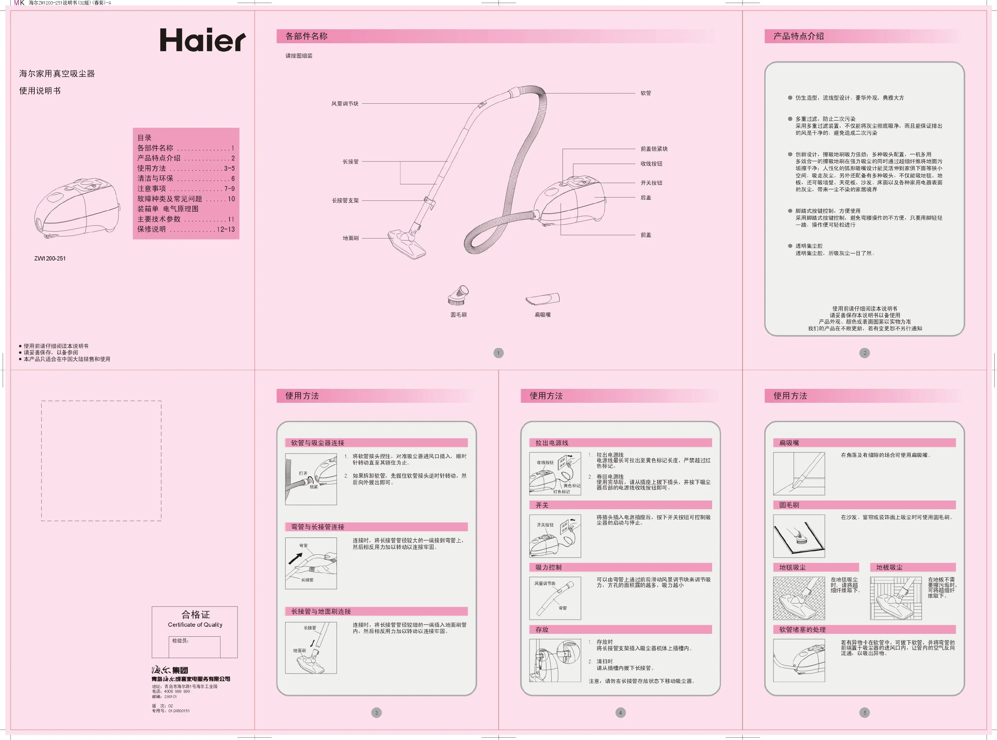 Olvassa el alább 📖 a magyar nyelvű használati útmutatót Haier ZW1200-251 (3 oldal) a porszívó kategóriában. Ezt az útmutatót 11 ember találta hasznosnak és 3 felhasználó értékelte átlagosan 4.0 csillagra