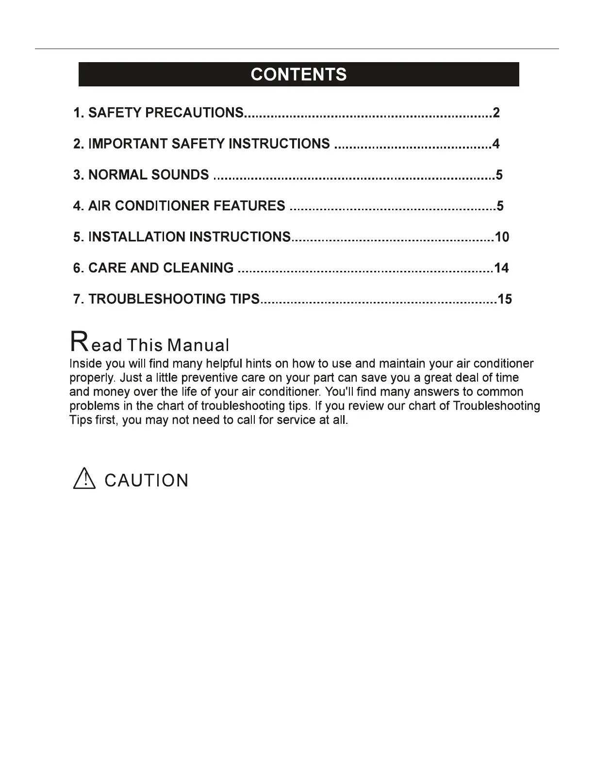 Heat Controller, Inc. Room Air Conditioner with R-410A Owner’s Manual