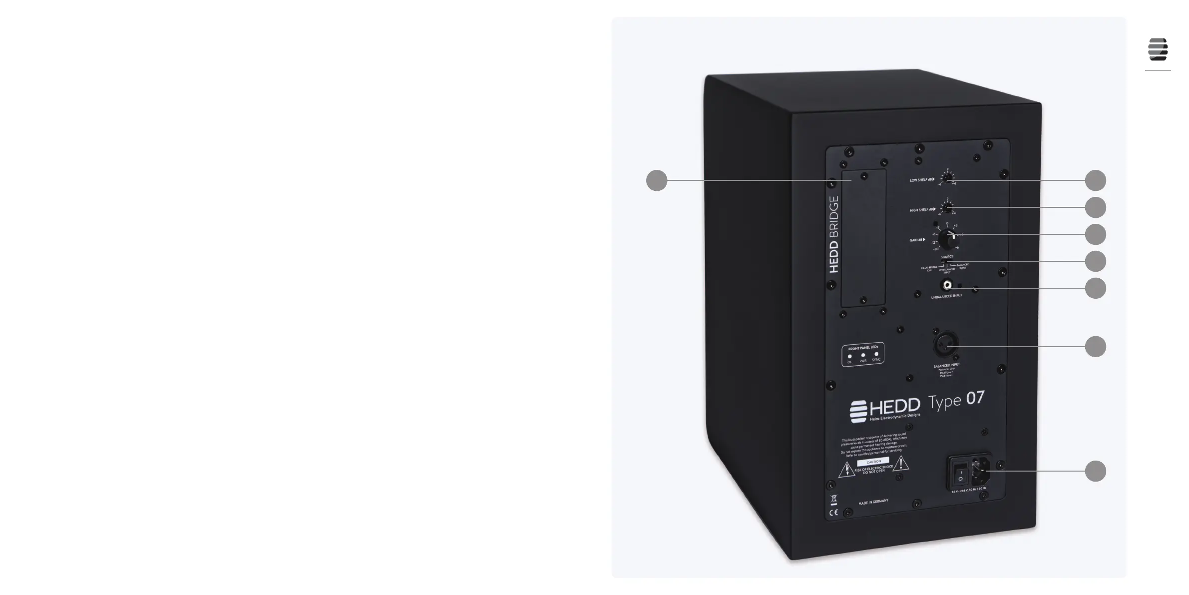 HEDD studio monitors are equipped with universal mains, meaning that the speakers work within a voltage range from
