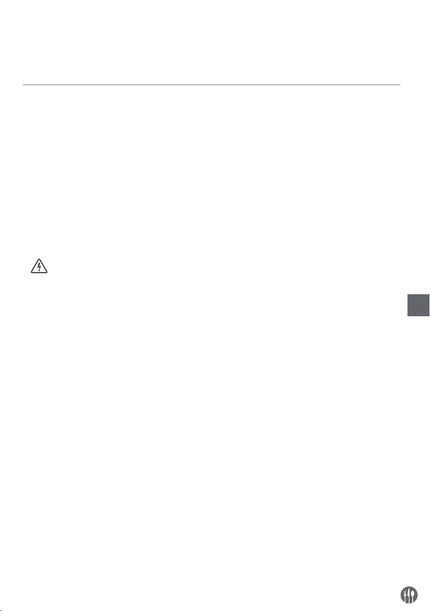 • Warning! Do not immerse the electrical parts of the appliance in water or other liquids.